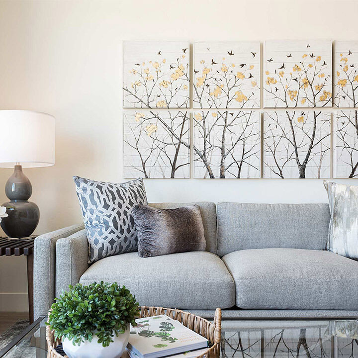 Arboretum at Barber Station is dedicated to ensuring residents truly cherish their living spaces. To encapsulate this essence in our model unit, our interior designers employed a transitional design featuring organic, muted colors, an aesthetic that caters to a variety of tastes. Additionally, we've infused pops of color through plants and themed artwork and fabrics, elevating the spaces and creating an inviting atmosphere for potential buyers to envision their future home.