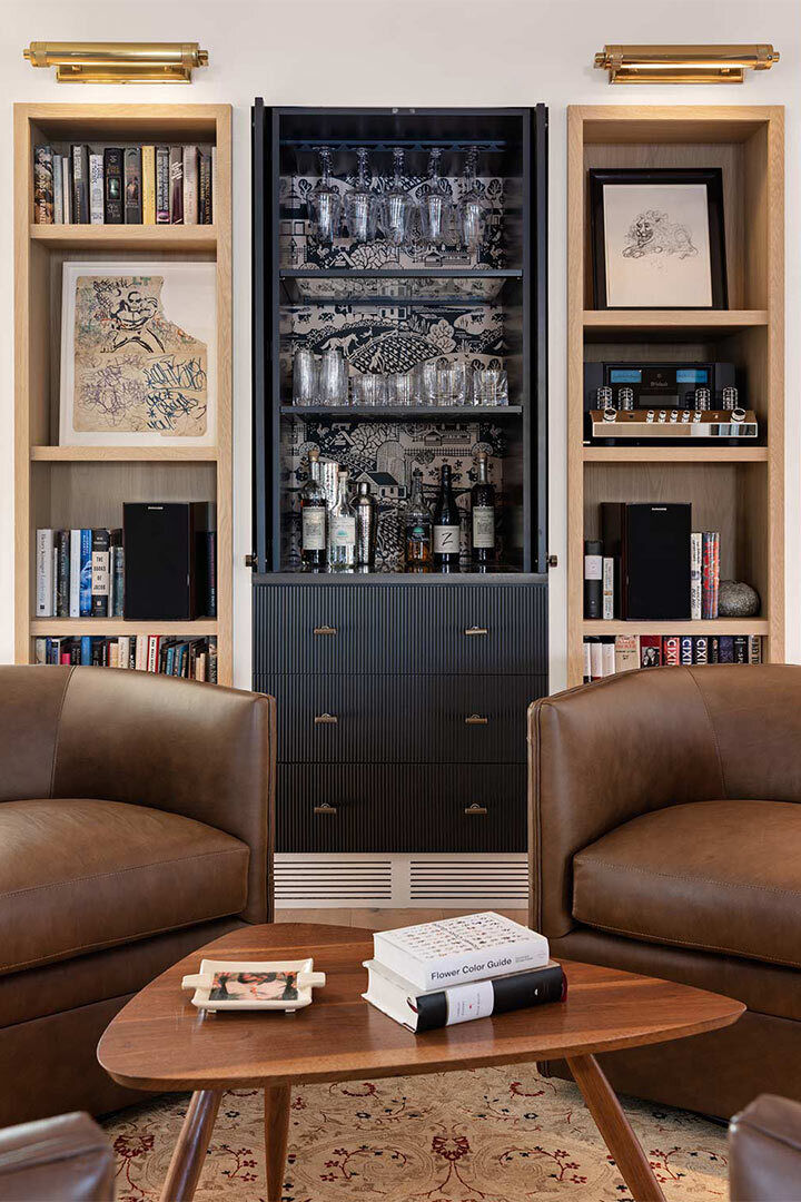 When our residential team tackles a full-house renovation, we take extra care to create a cohesive thread between each space. We can achieve that through complementary patterns, repeating materials (without feeling matchy-matchy) and the usage of a consistent color palette. One of our favorite aspects of this project? Check out the ceiling details in the open kitchen, living room, and theater room!