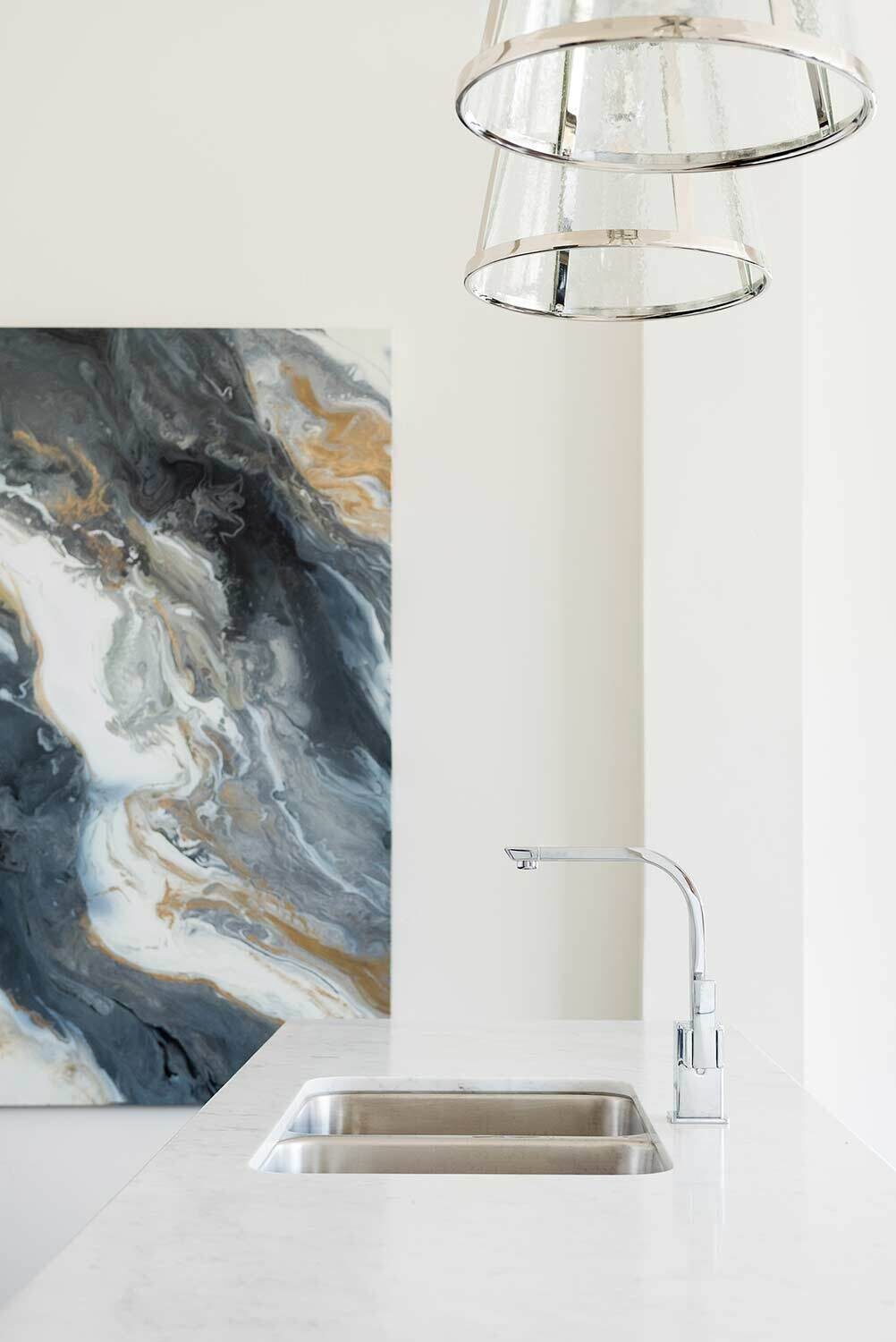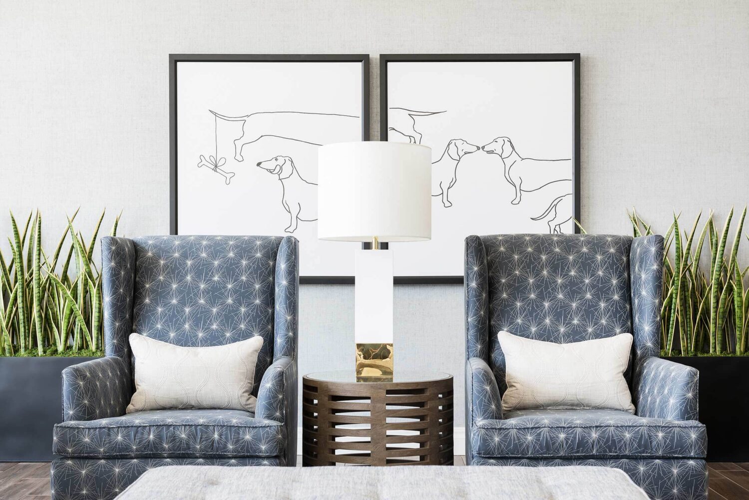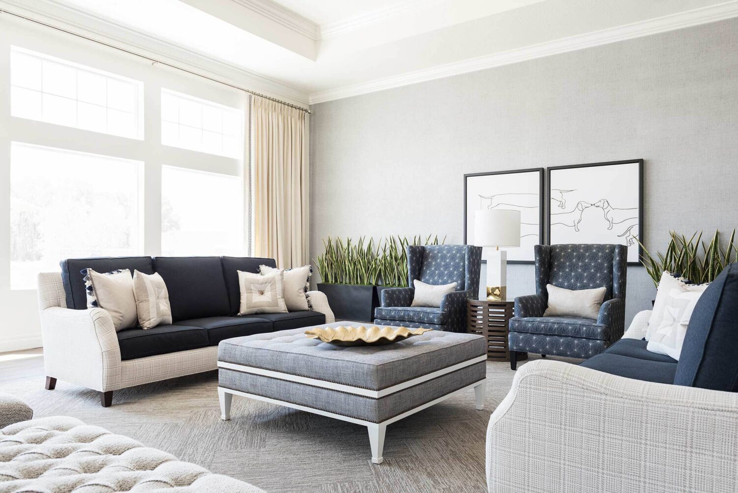 Rivulet Apartments is a resort-inspired community offering a relaxed yet luxurious environment with amenities galore. When our team was asked to design the complex’s primary public gathering space and gym, we knew we needed a few modern accents that would invite residents in. By creating a community kitchen and applying eye-catching graphic treatments to the gym walls, the design meets the modern needs and desires of its residents.
