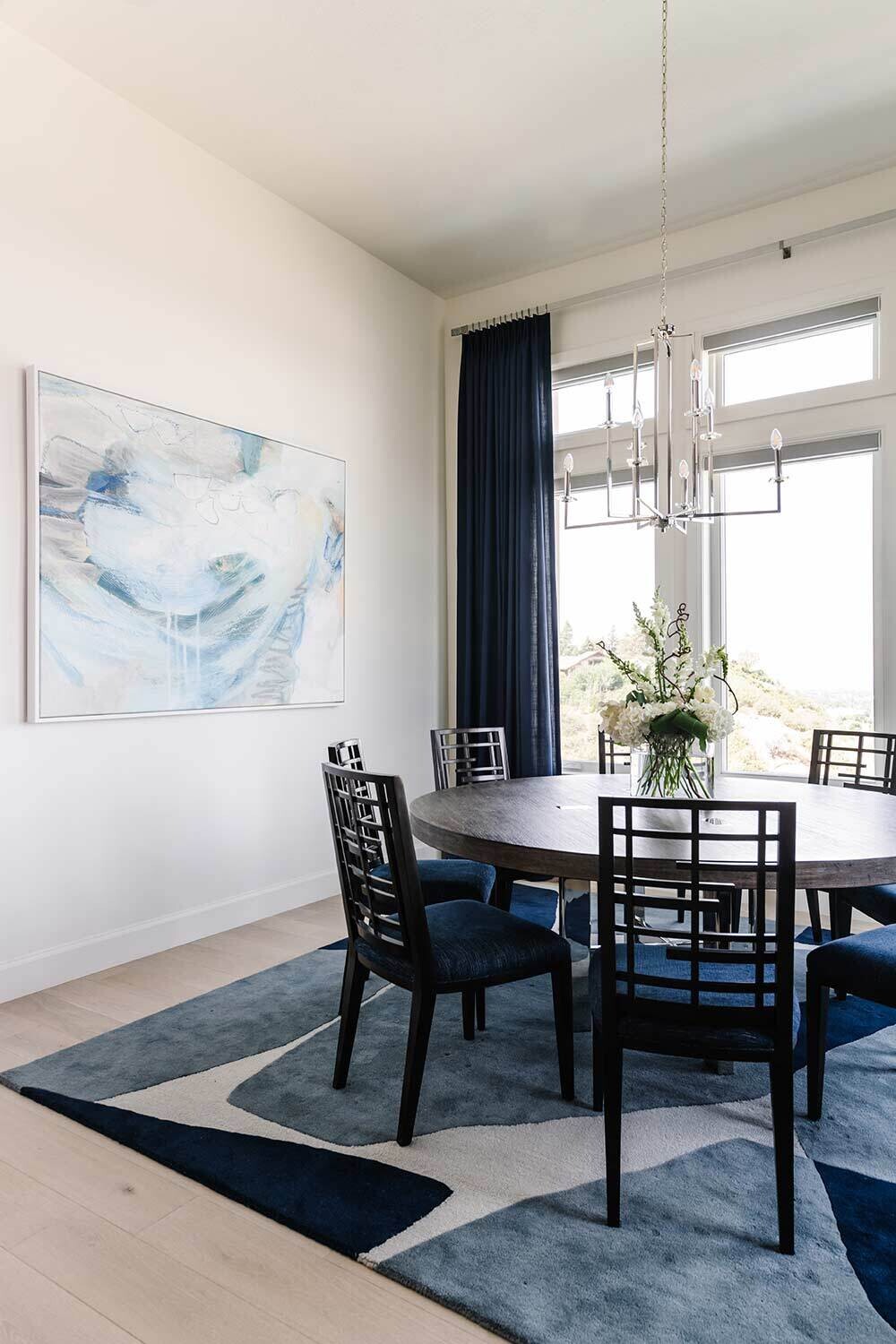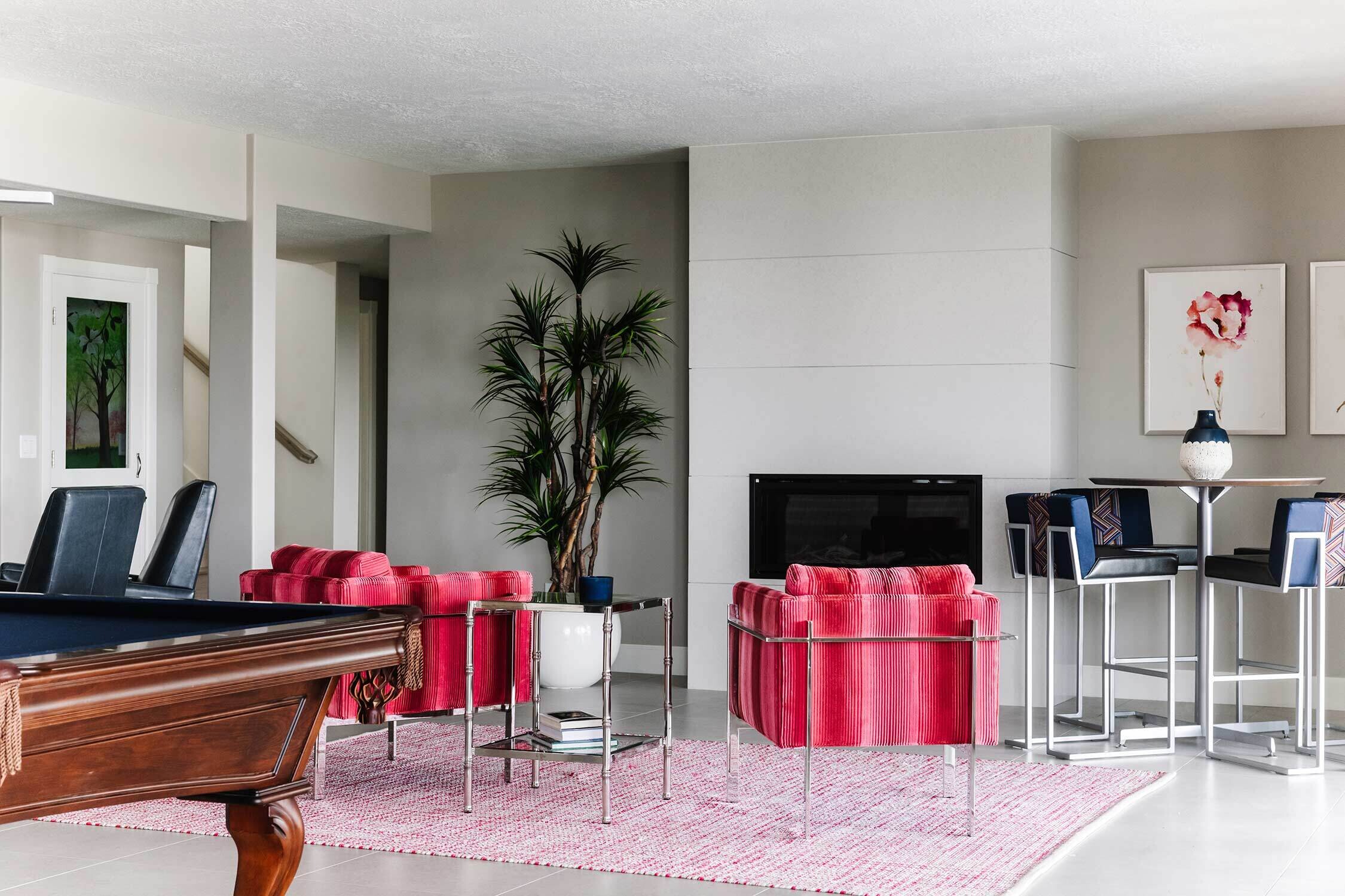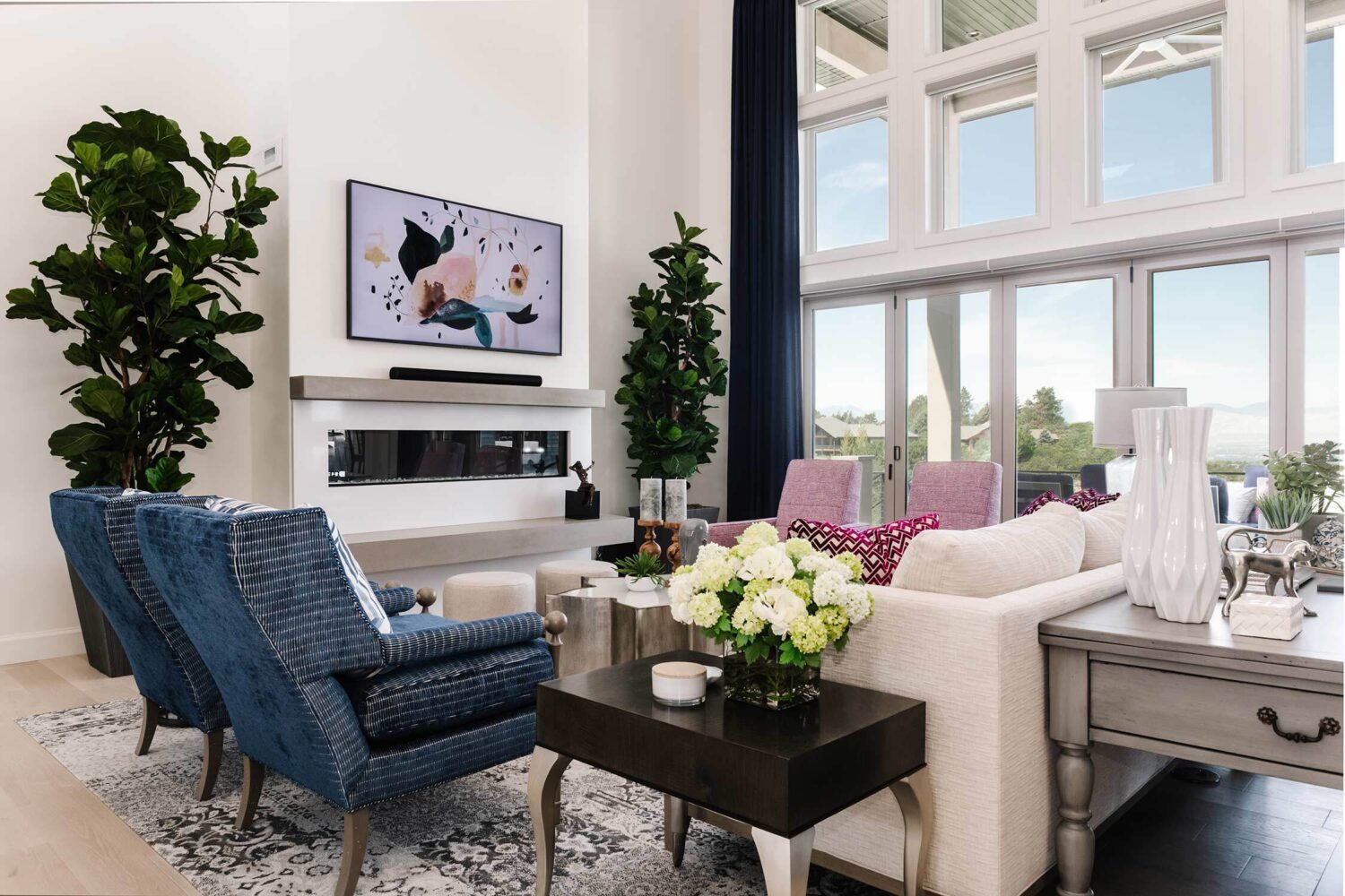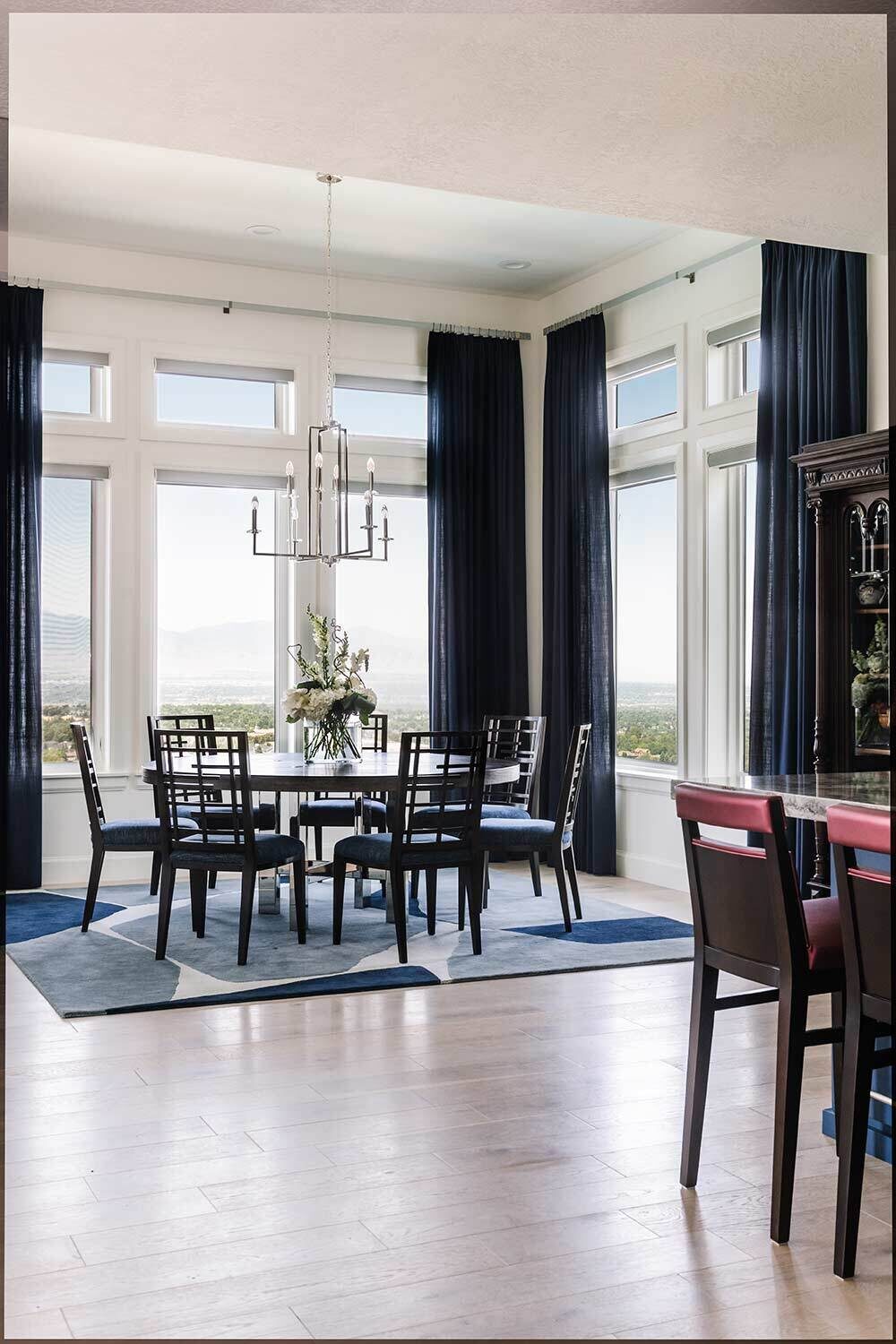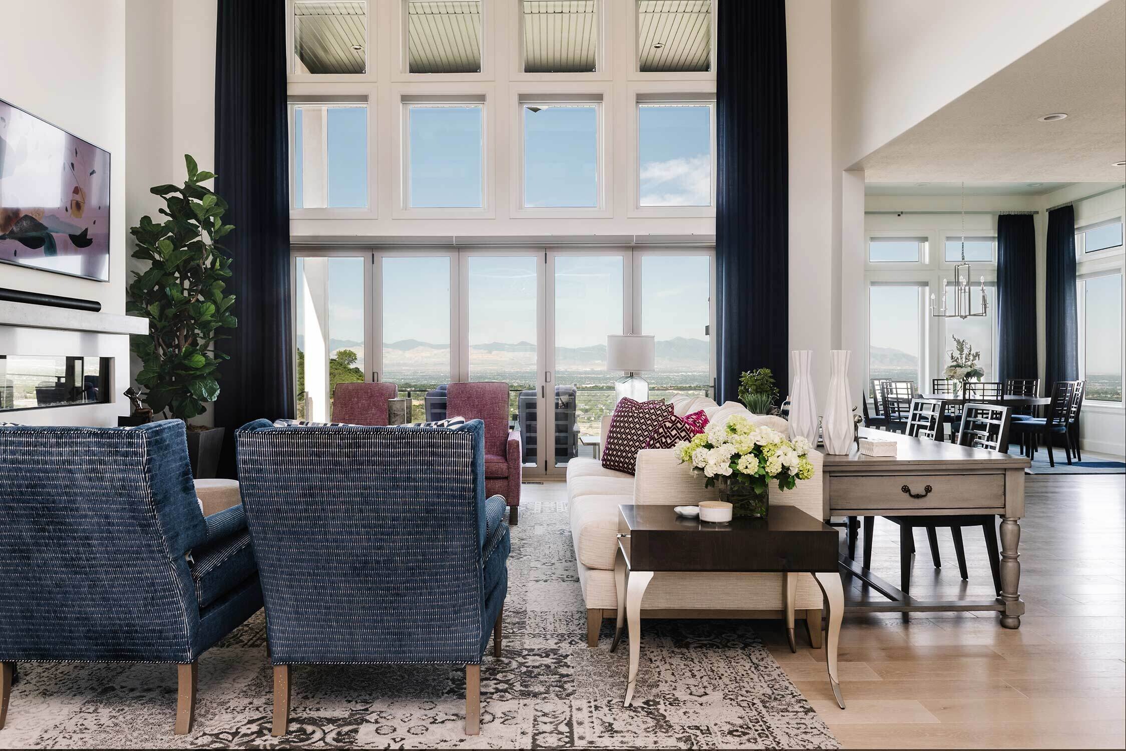 When you have a view like this Cottonwood Heights’ family, the design aesthetic needs a touch of glamour. The Open Range team leapt at the challenge, incorporating pops of bold color, touch-worthy fabrics and several custom furniture pieces over a clean base palate. We carried over a cohesive look across the family house - including the kitchen, dining, primary living room, as well as the primary bedroom and the basement game room - while observing the practical needs and limitations of the space.