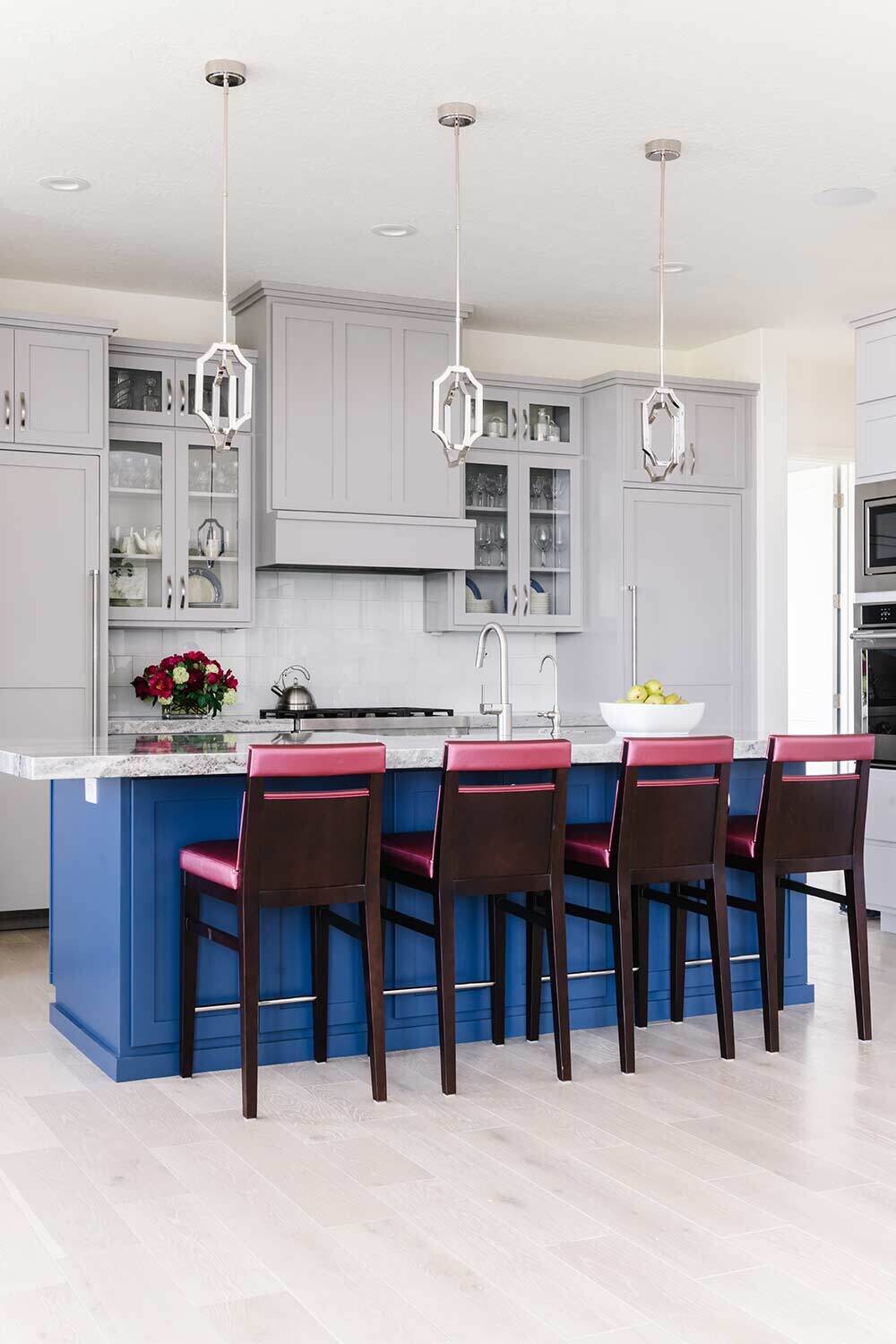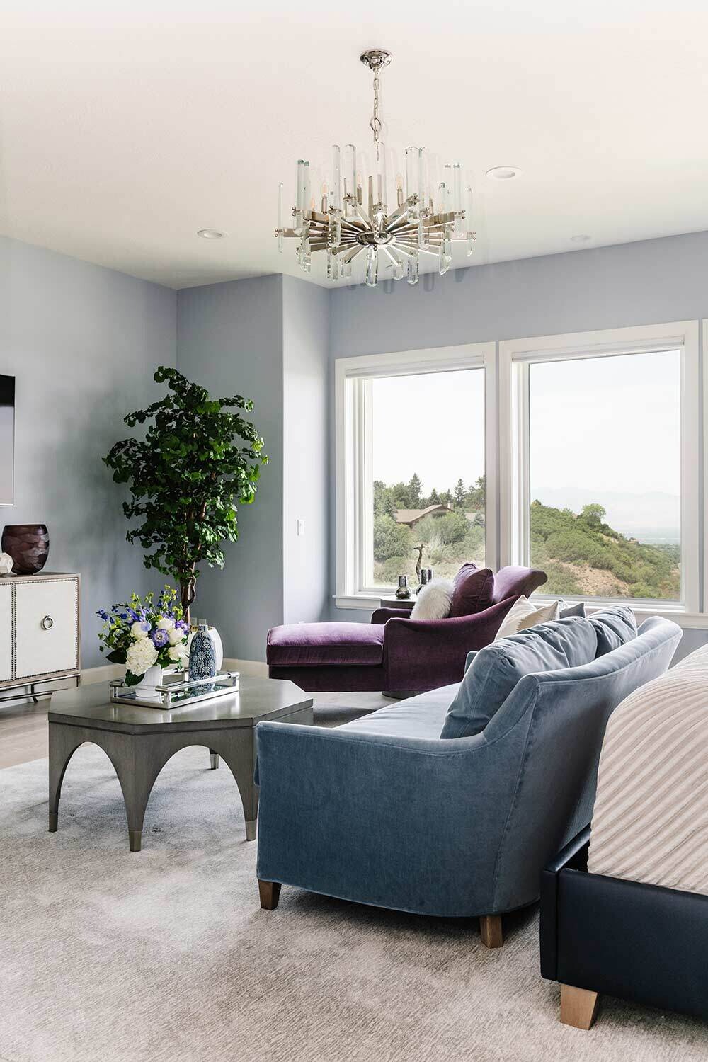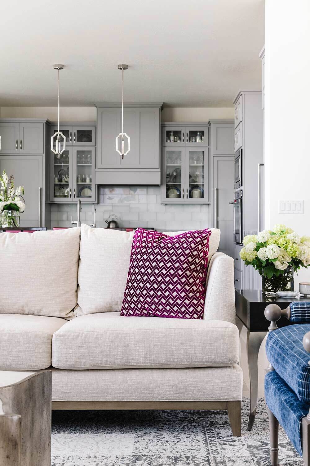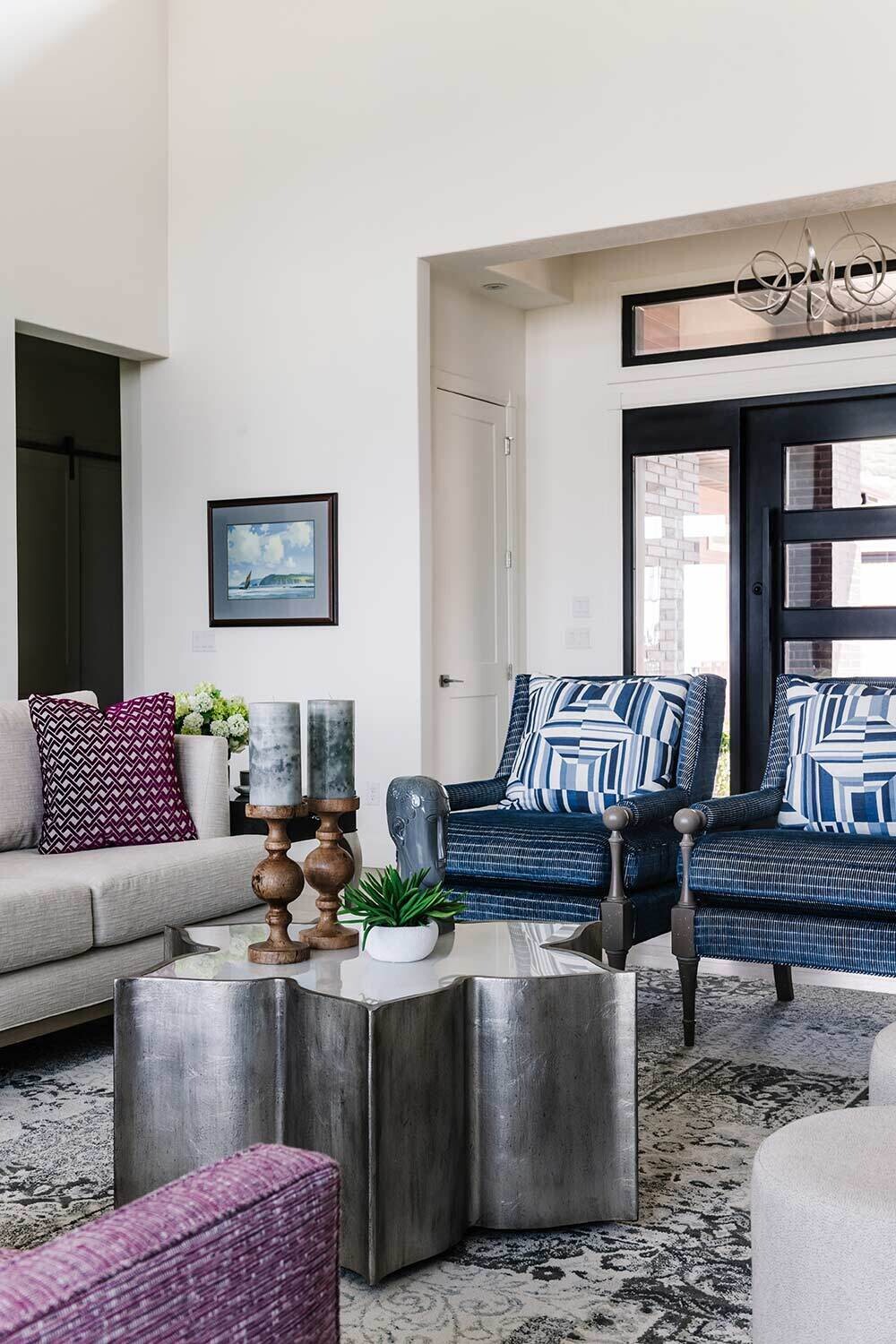 When you have a view like this Cottonwood Heights’ family, the design aesthetic needs a touch of glamour. The Open Range team leapt at the challenge, incorporating pops of bold color, touch-worthy fabrics and several custom furniture pieces over a clean base palate. We carried over a cohesive look across the family house - including the kitchen, dining, primary living room, as well as the primary bedroom and the basement game room - while observing the practical needs and limitations of the space.