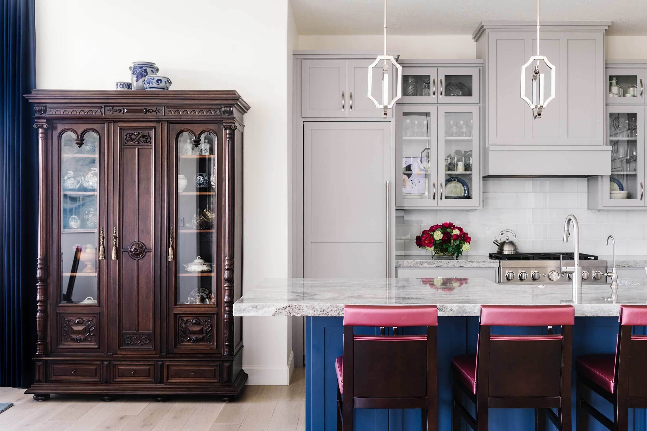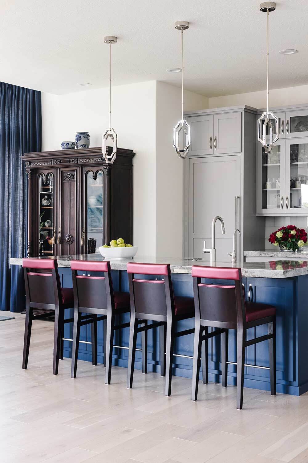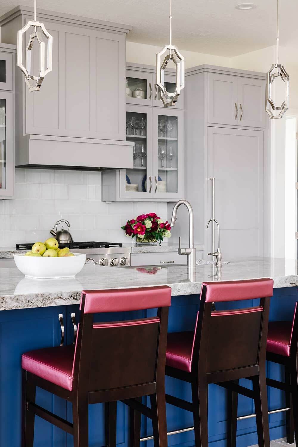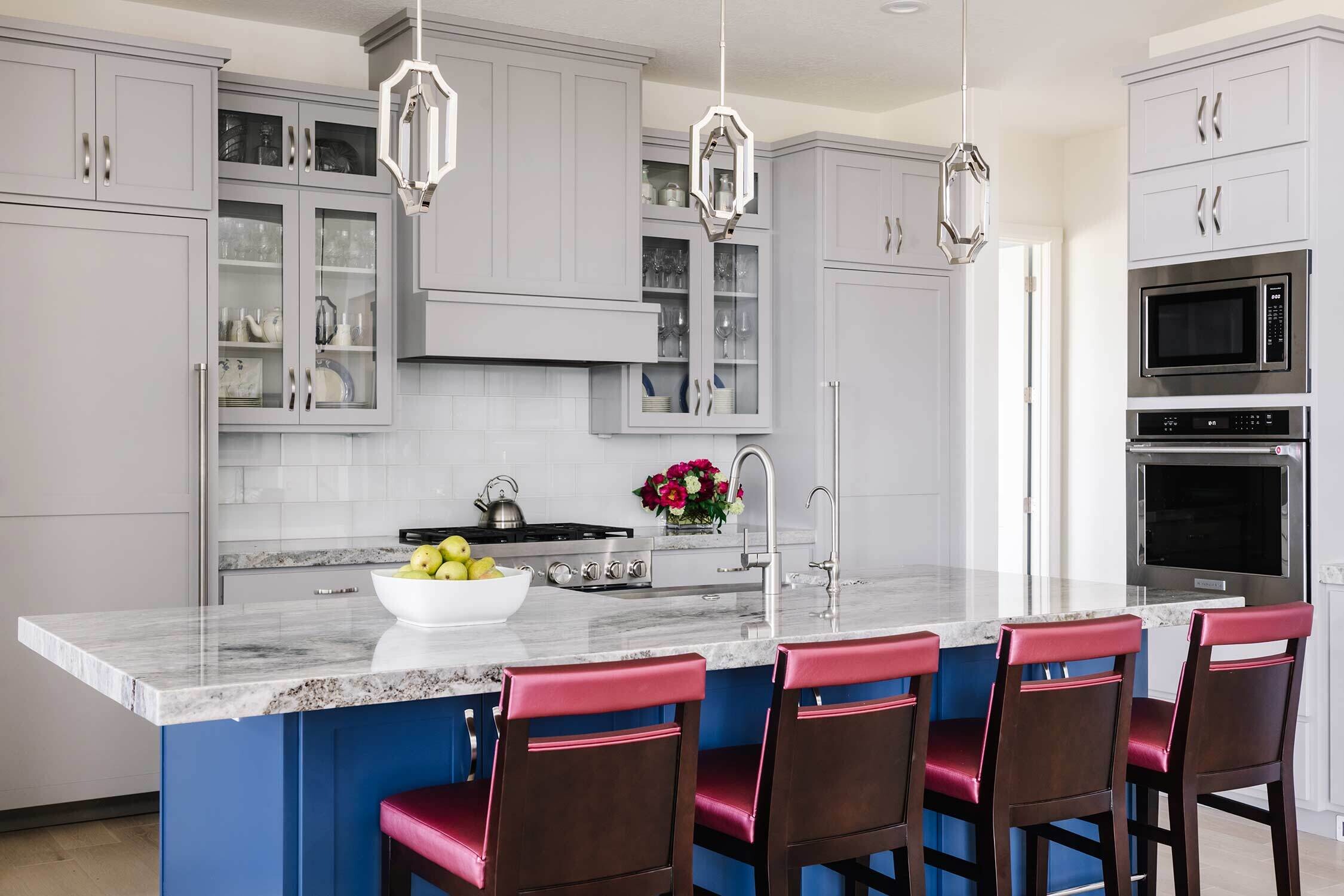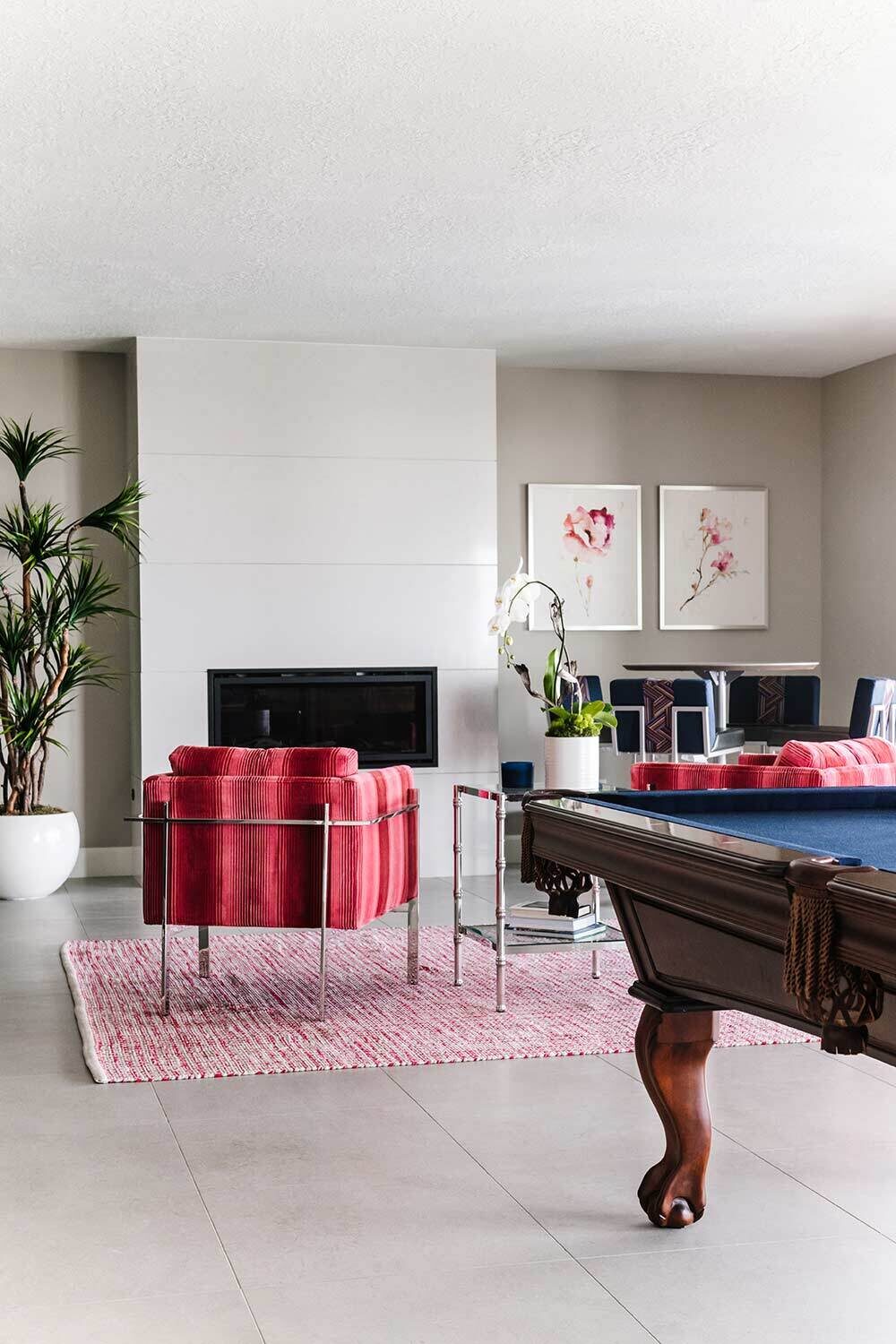 When you have a view like this Cottonwood Heights’ family, the design aesthetic needs a touch of glamour. The Open Range team leapt at the challenge, incorporating pops of bold color, touch-worthy fabrics and several custom furniture pieces over a clean base palate. We carried over a cohesive look across the family house - including the kitchen, dining, primary living room, as well as the primary bedroom and the basement game room - while observing the practical needs and limitations of the space.