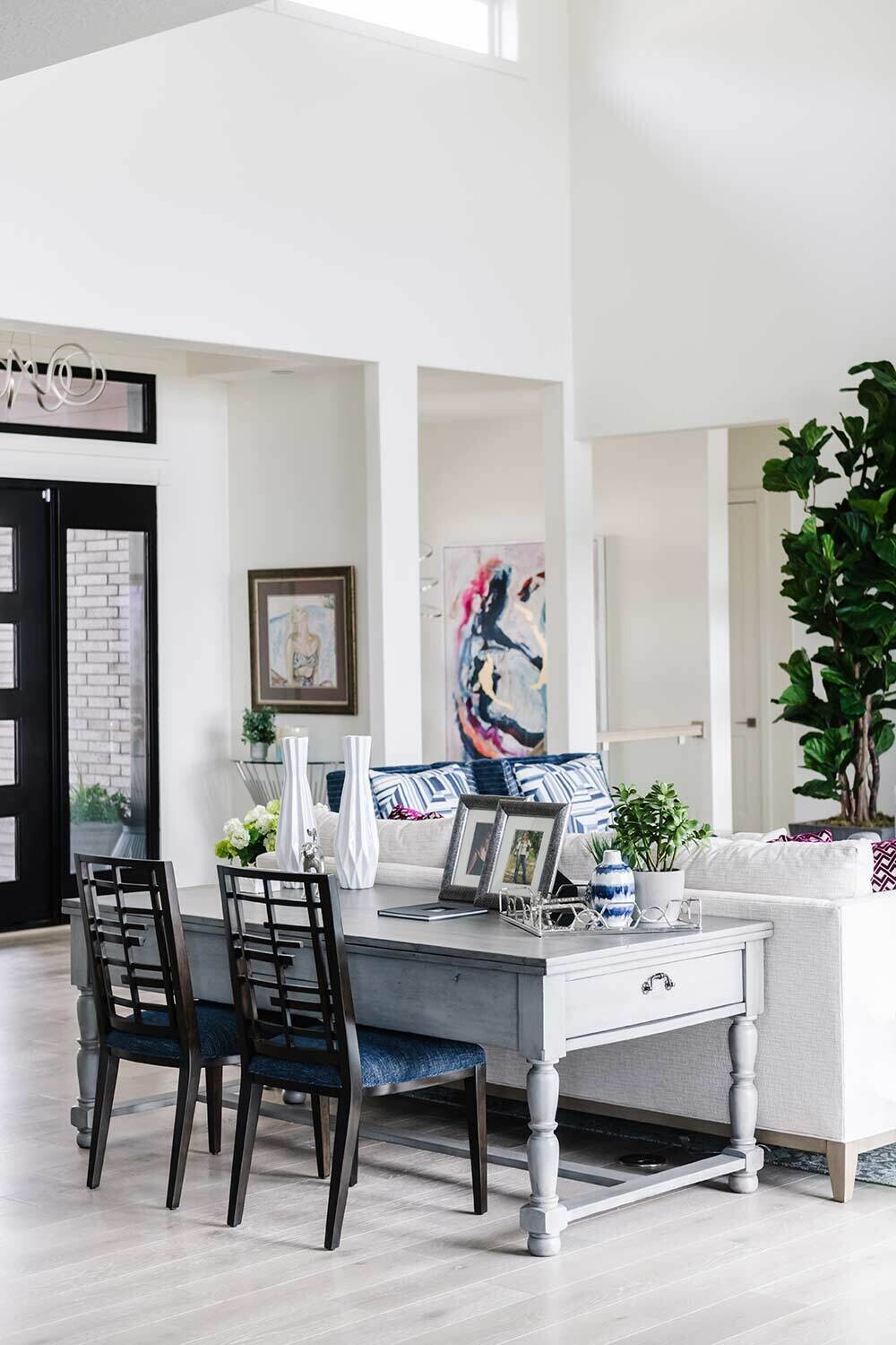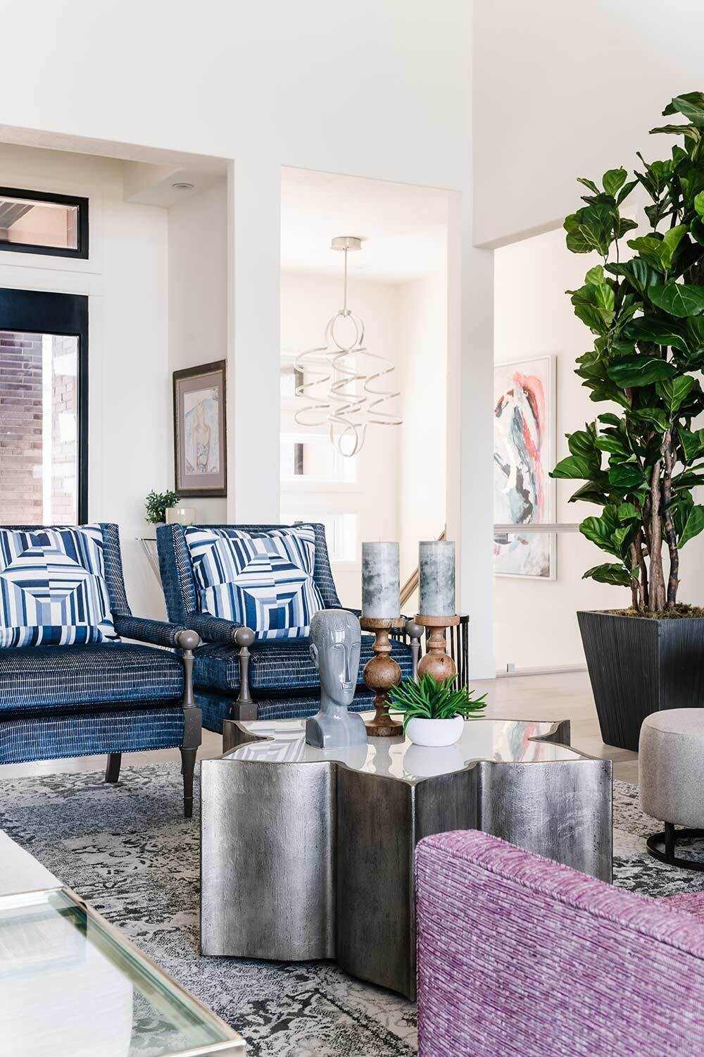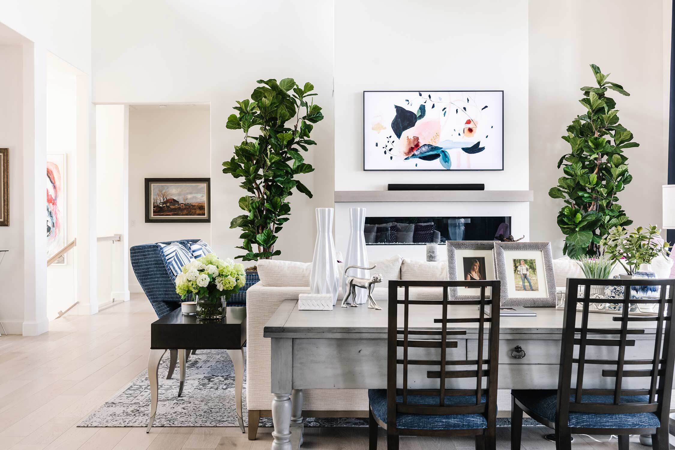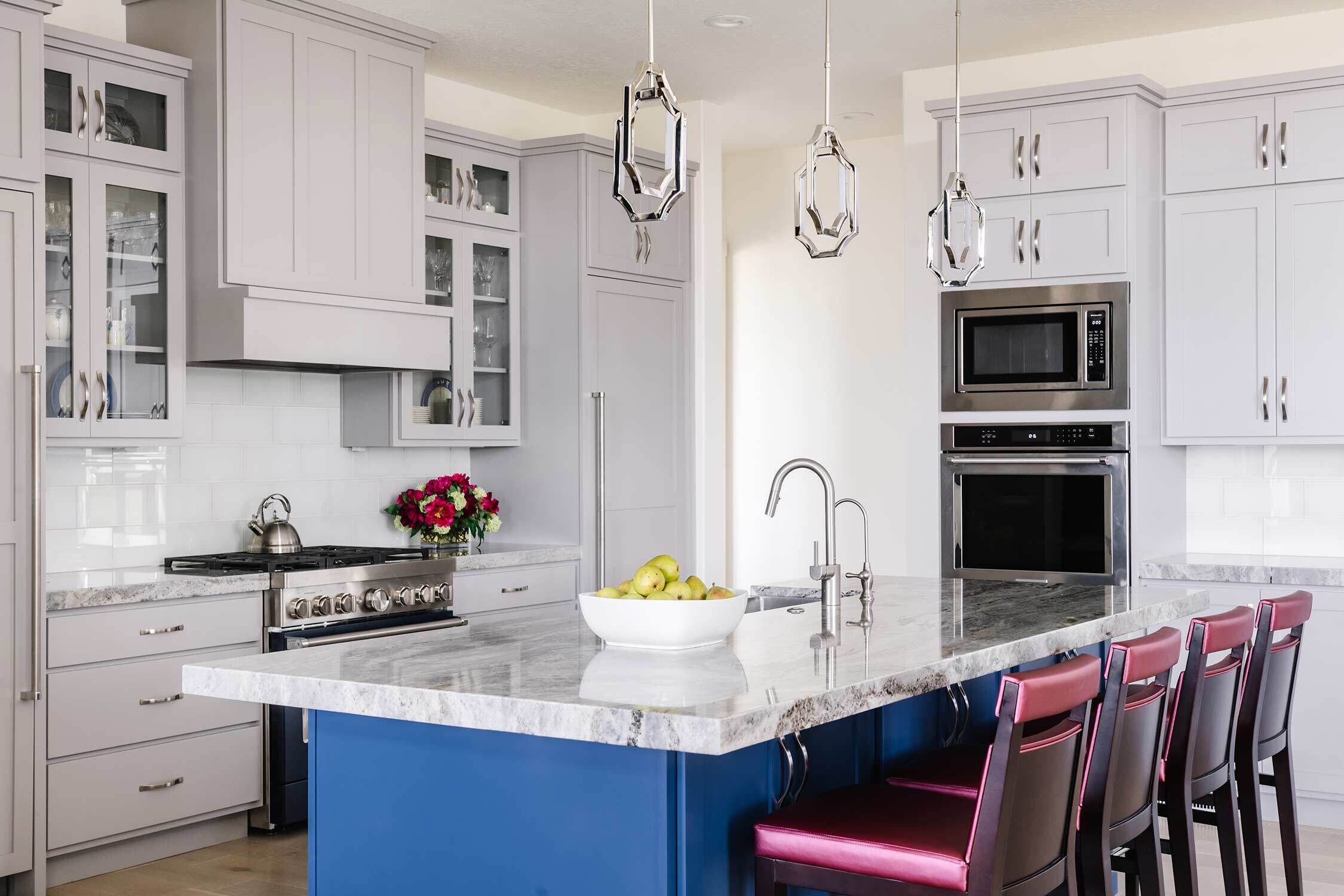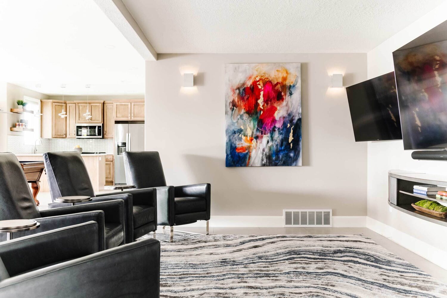 When you have a view like this Cottonwood Heights’ family, the design aesthetic needs a touch of glamour. The Open Range team leapt at the challenge, incorporating pops of bold color, touch-worthy fabrics and several custom furniture pieces over a clean base palate. We carried over a cohesive look across the family house - including the kitchen, dining, primary living room, as well as the primary bedroom and the basement game room - while observing the practical needs and limitations of the space.