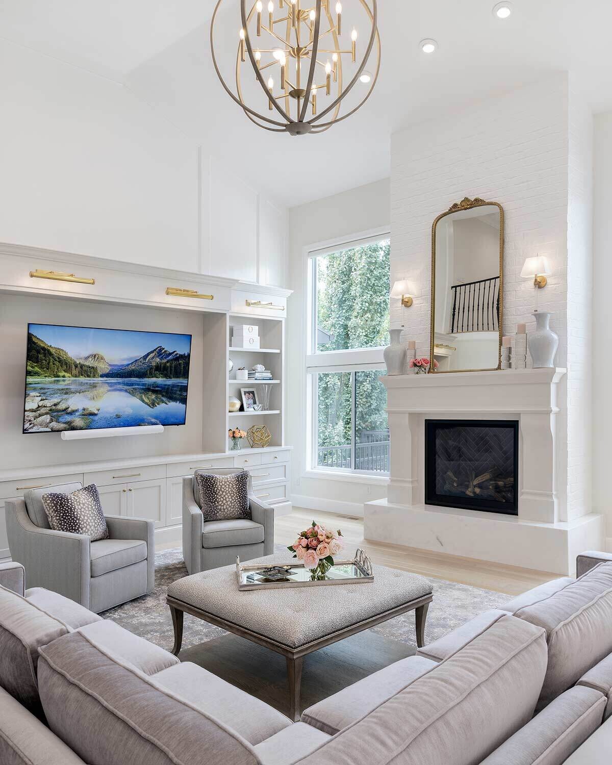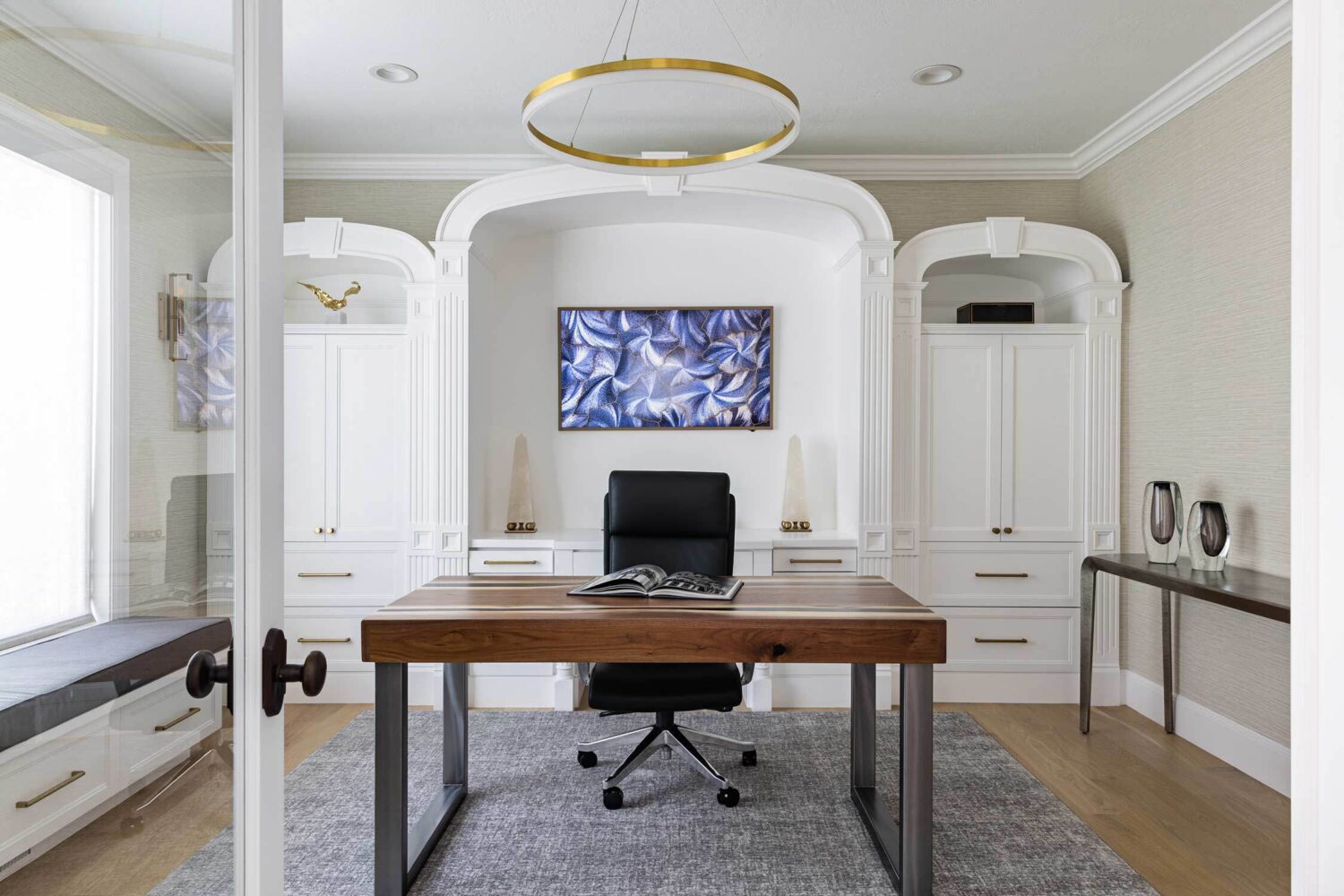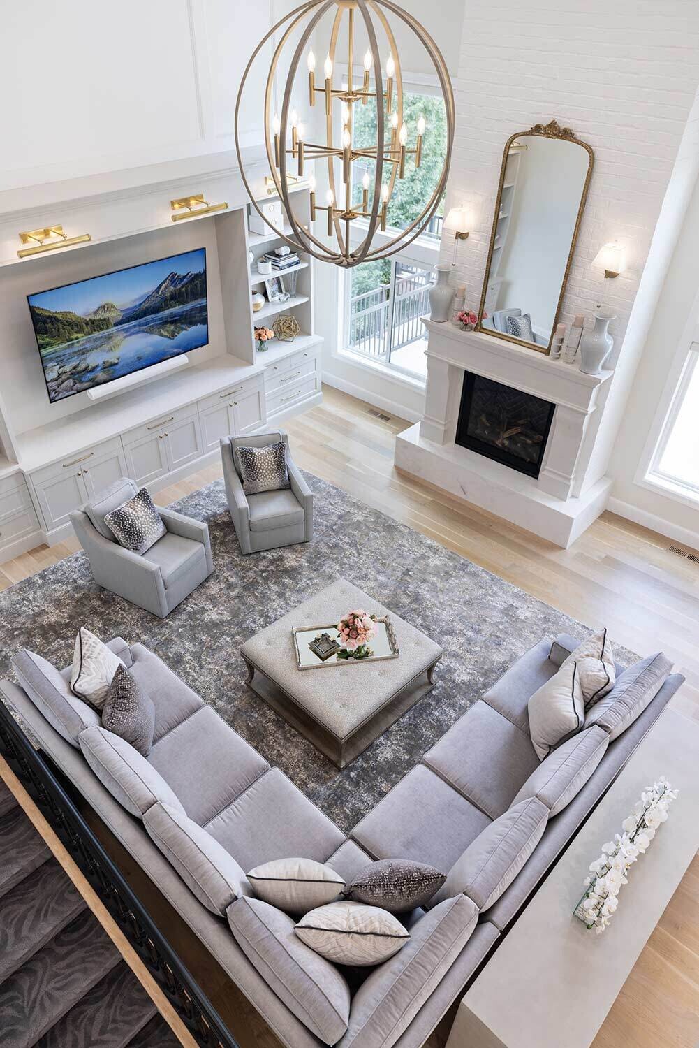This transitional Draper design hits just the right balance between modern and traditional - from its wrought-iron foyer railings to the traditional wall molding details, and insertion of unexpected brass lighting touches.