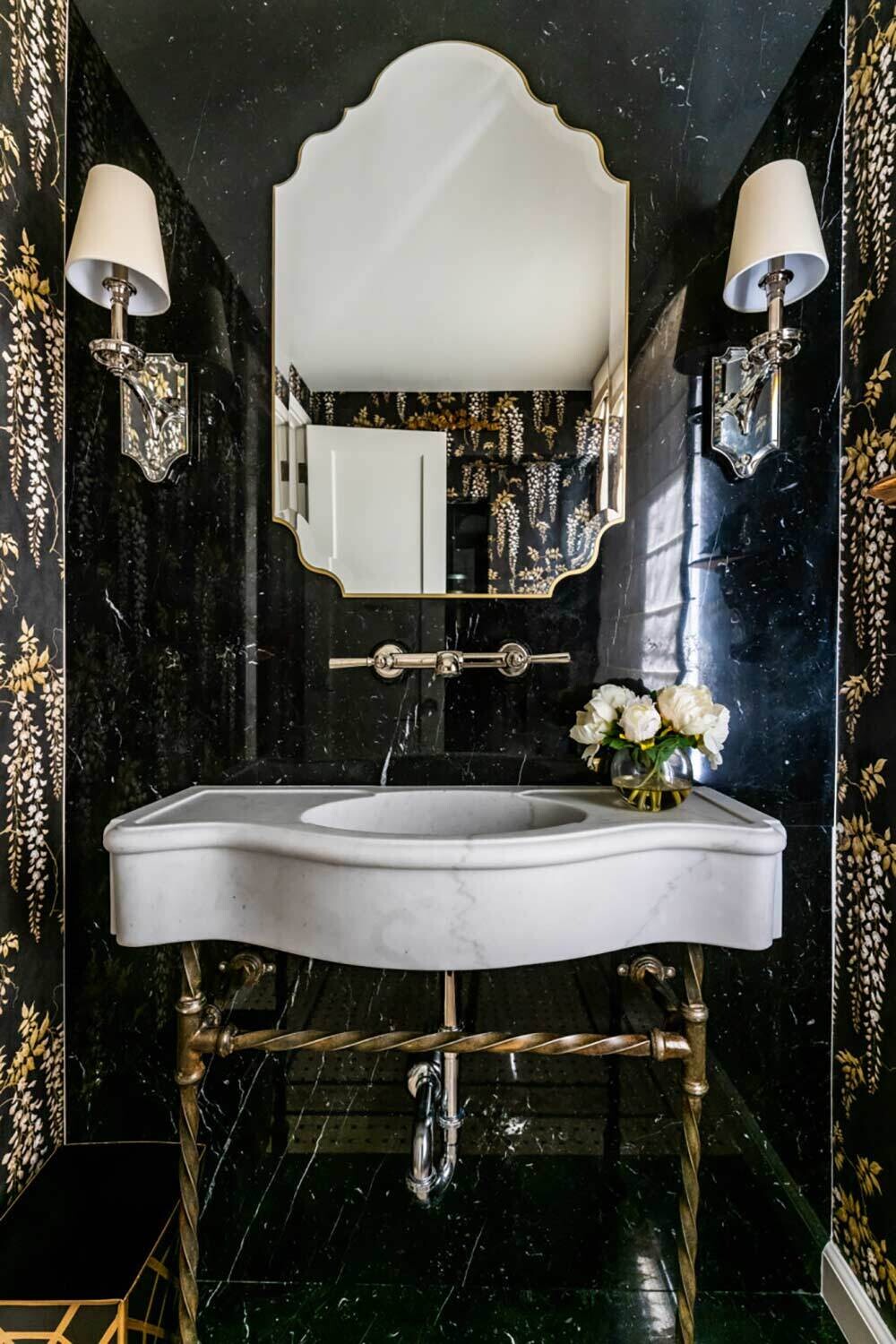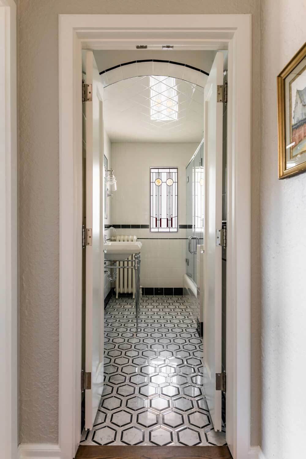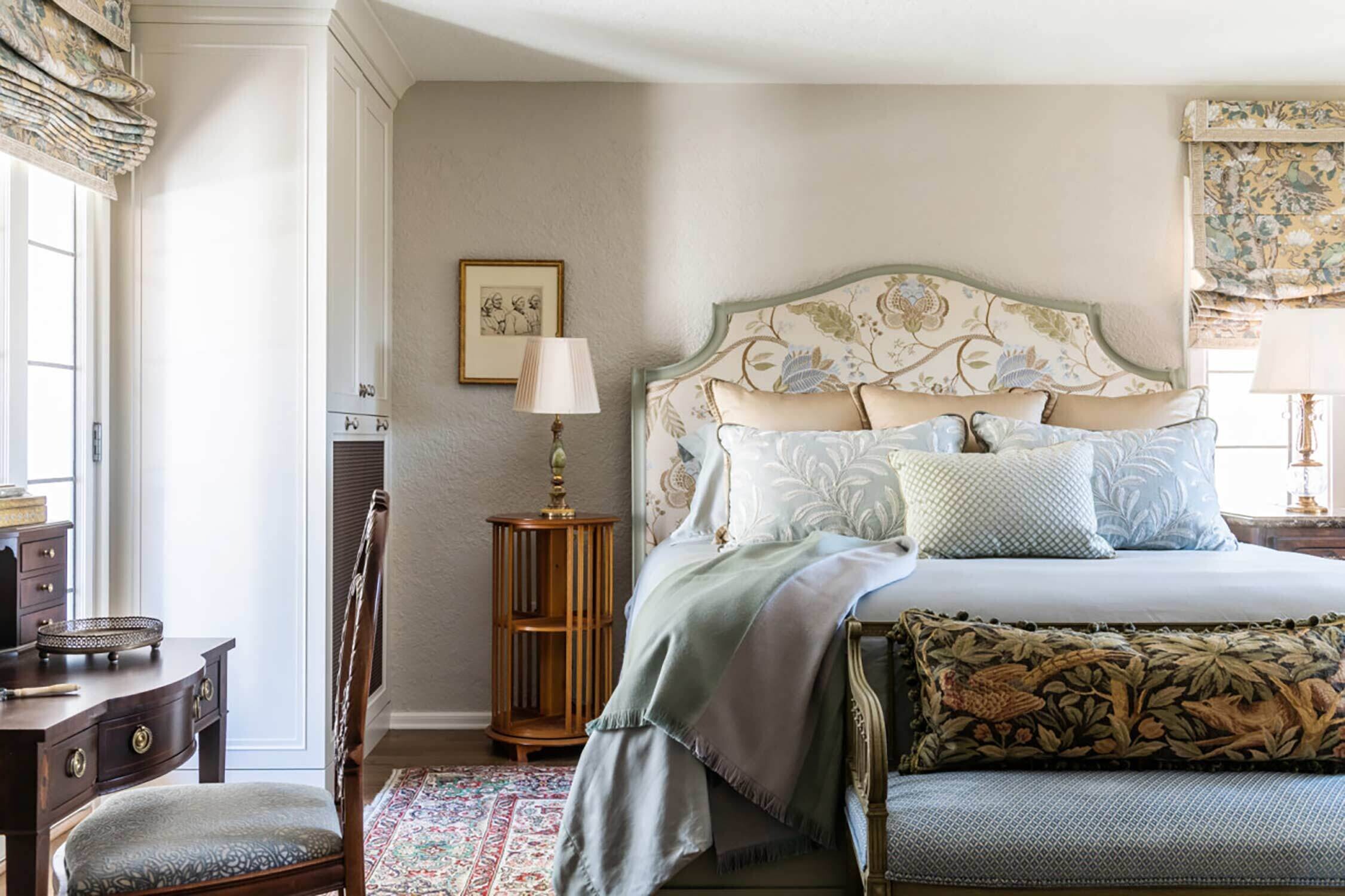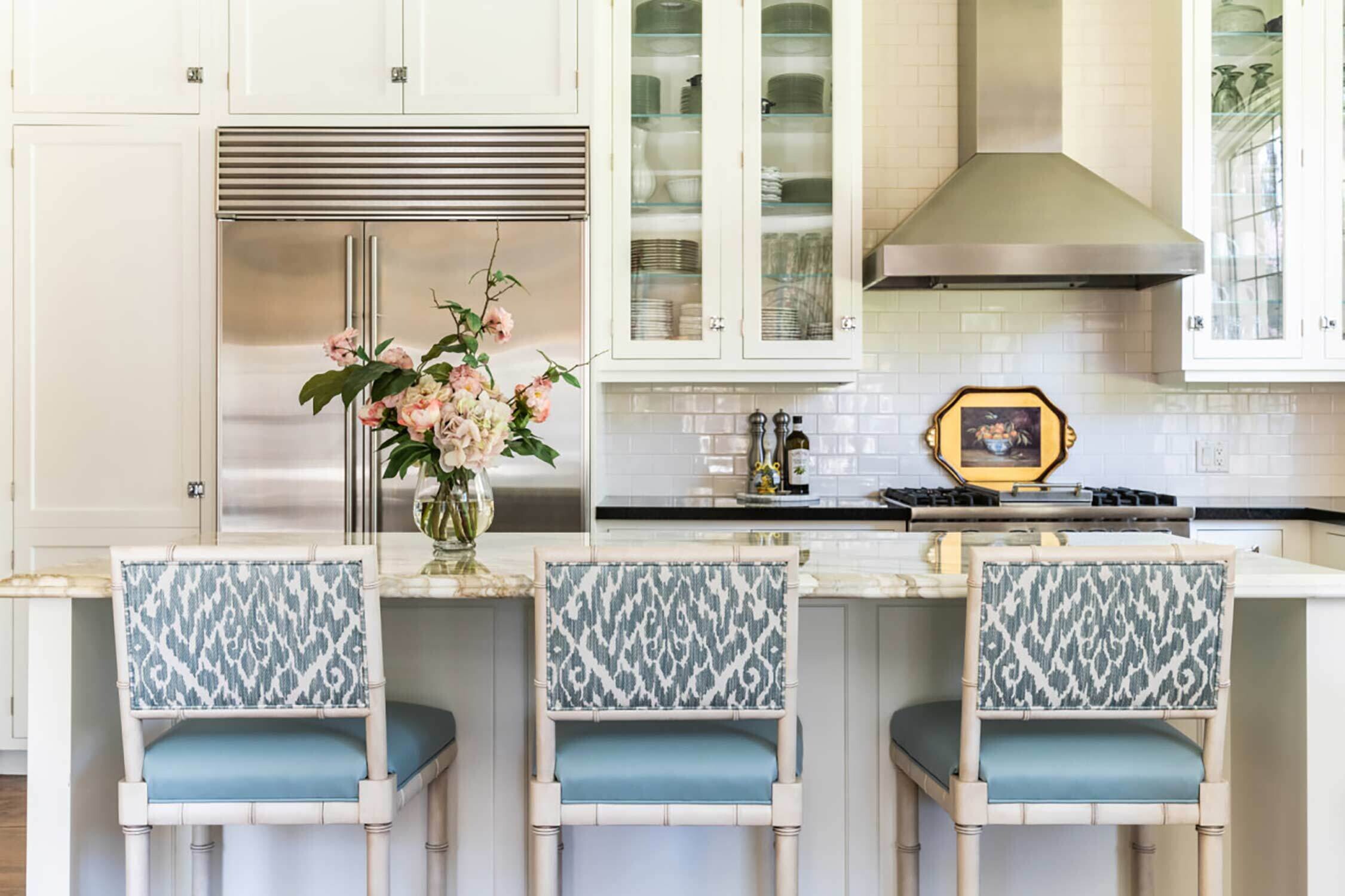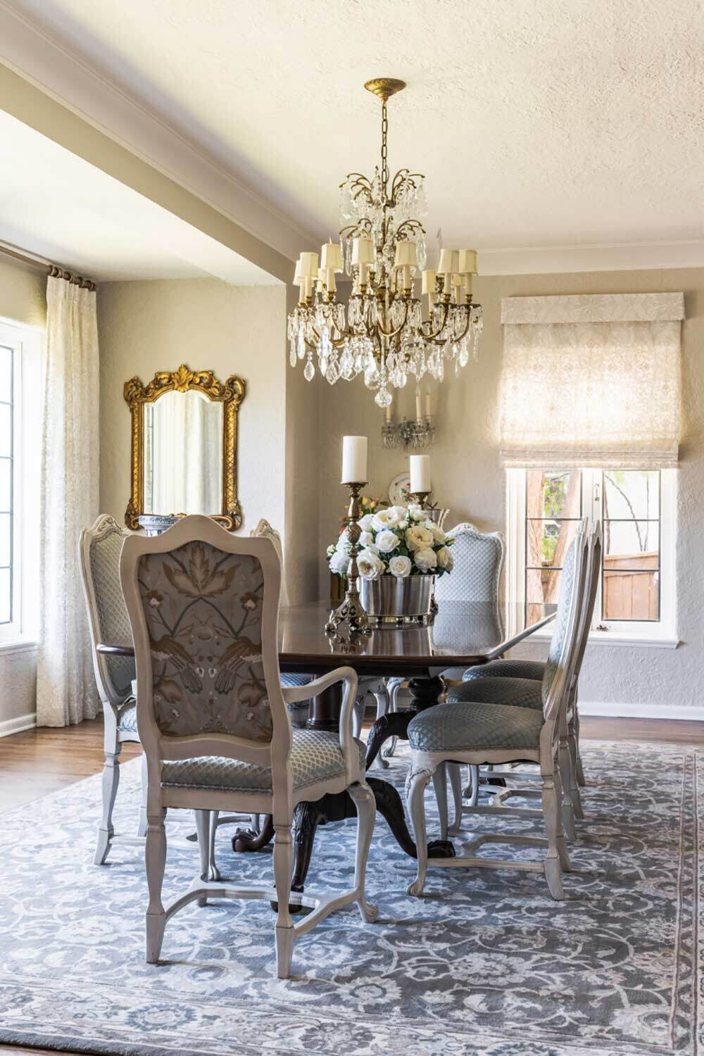 We gave this Spanish Colonial in Federal Heights a traditional facelift that felt authentic to the original home, with an upscale, modern-day touch. One of our favorite tools in that transformation - several tapestries in the wrought-iron stairway that play off of the traditional stair runner and wooden ceiling vaulting in the front foyer. The vibrant patterns woven throughout the project are the icing on the cherry.