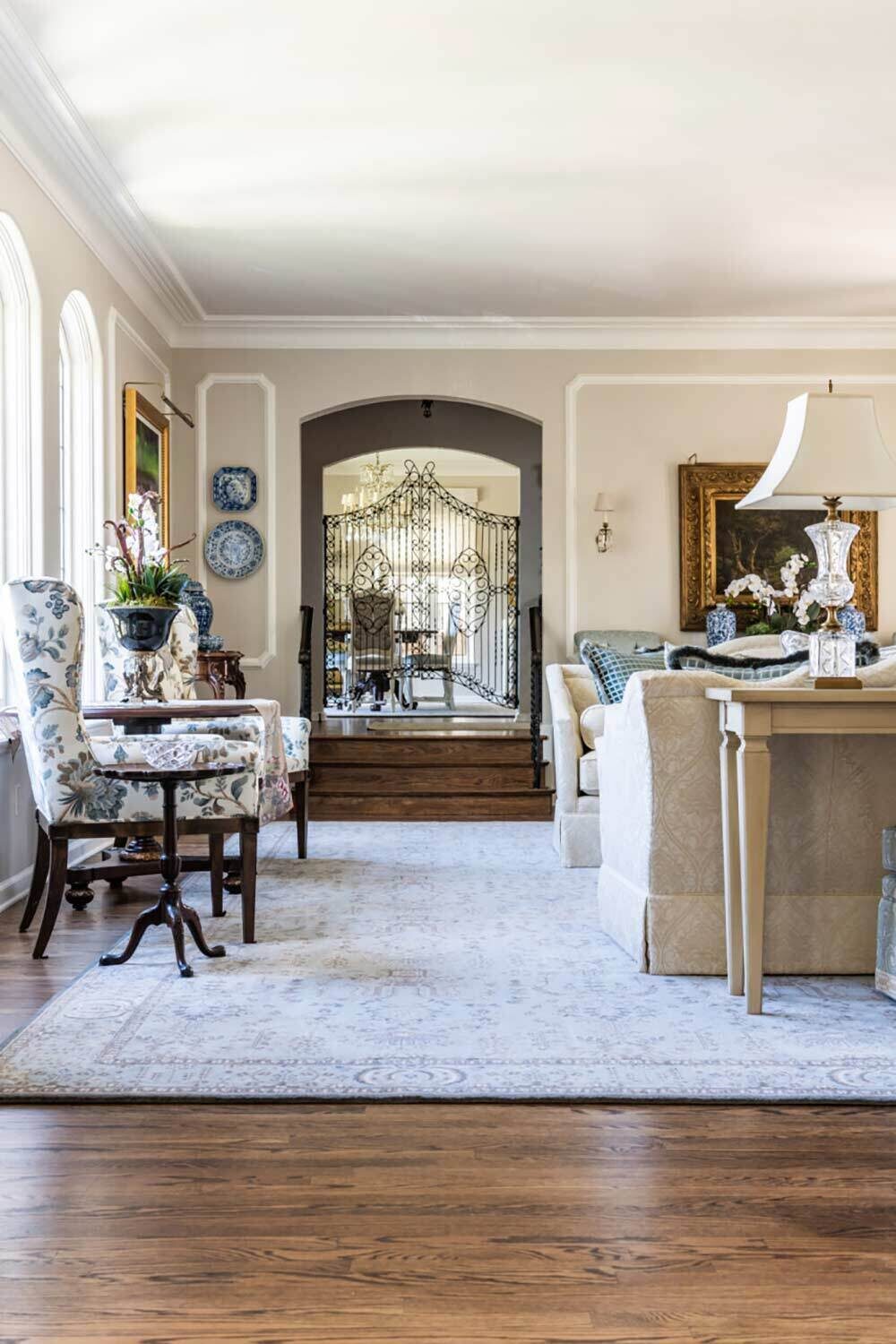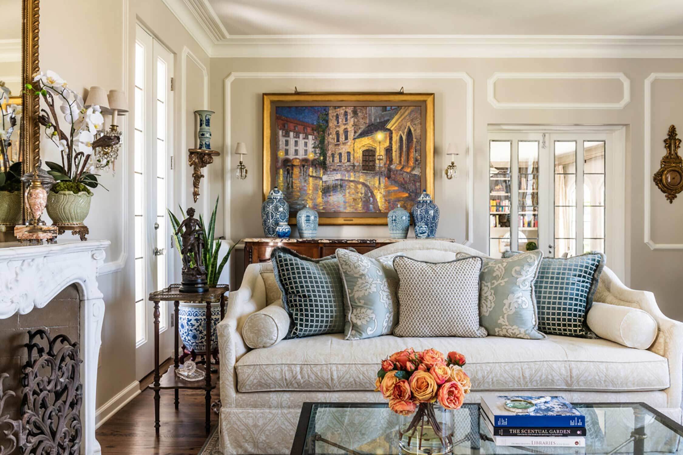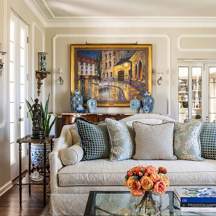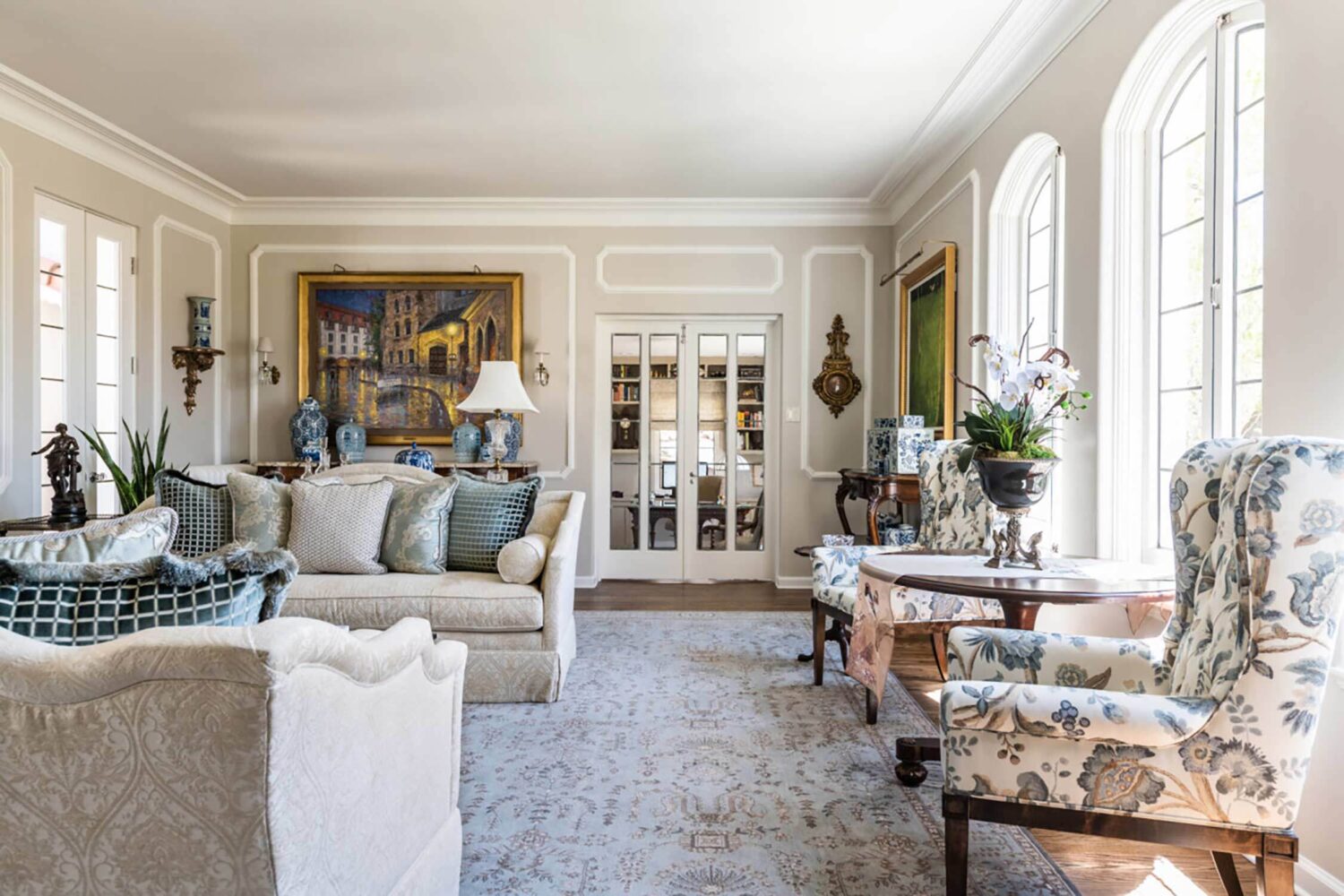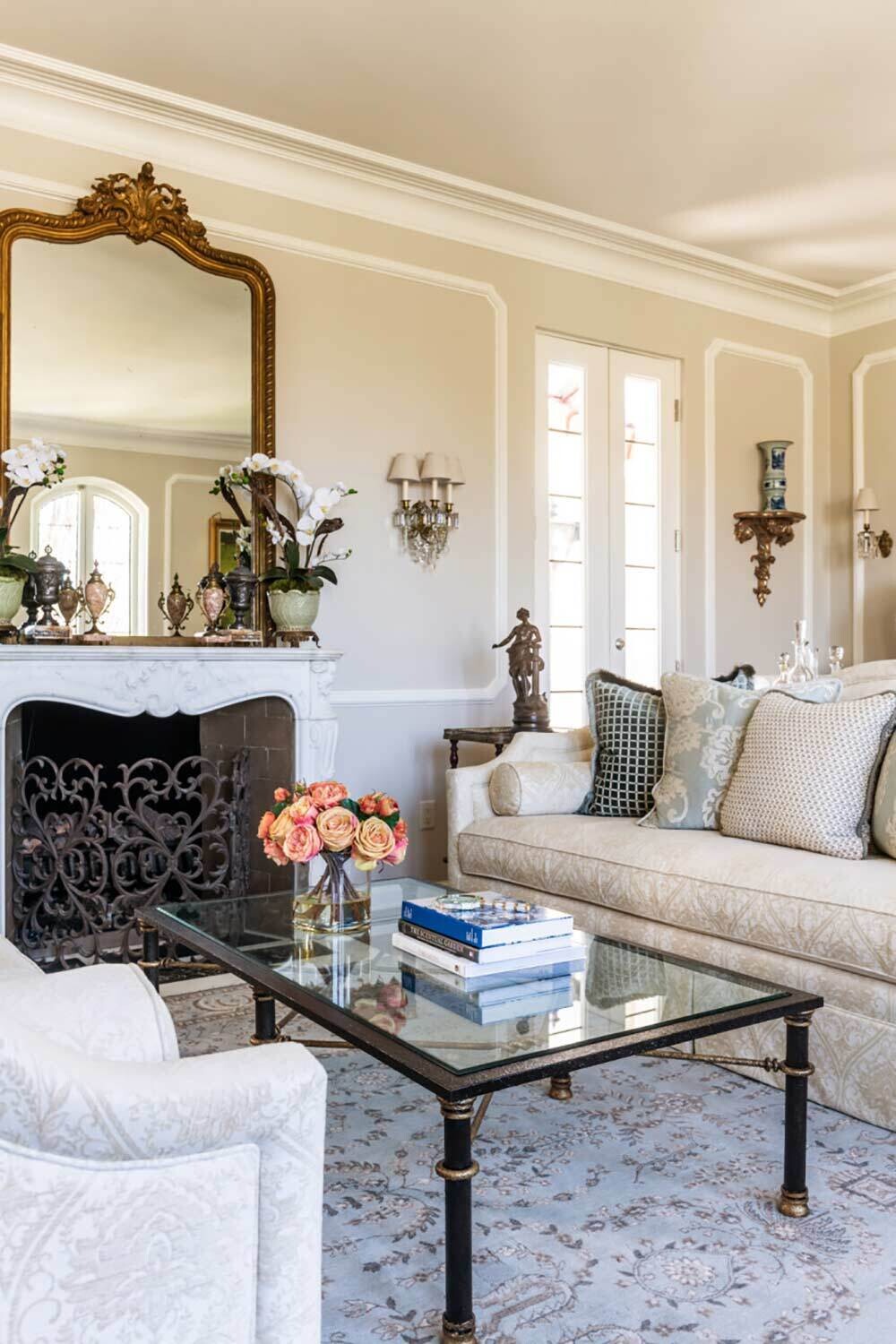 We gave this Spanish Colonial in Federal Heights a traditional facelift that felt authentic to the original home, with an upscale, modern-day touch. One of our favorite tools in that transformation - several tapestries in the wrought-iron stairway that play off of the traditional stair runner and wooden ceiling vaulting in the front foyer. The vibrant patterns woven throughout the project are the icing on the cherry.