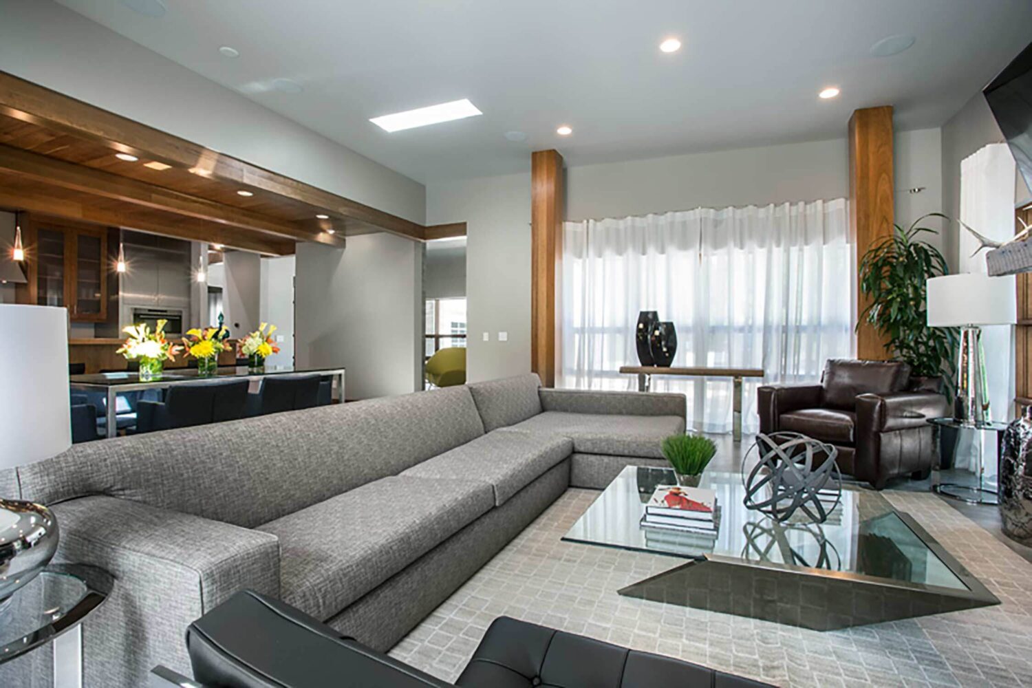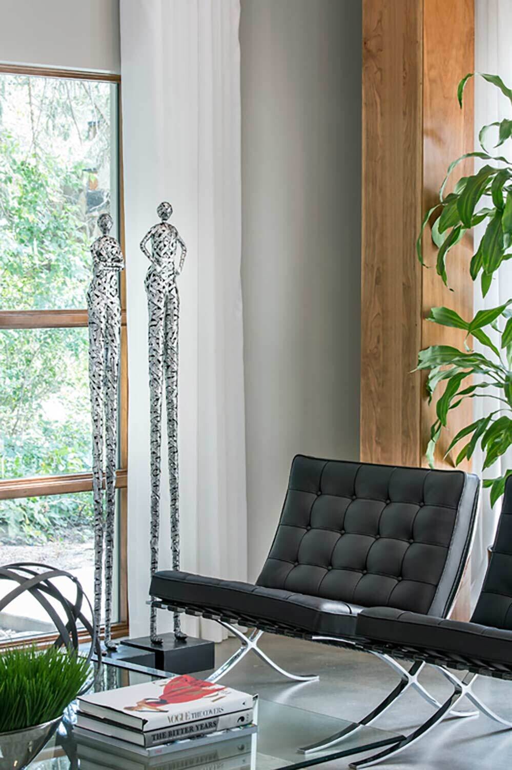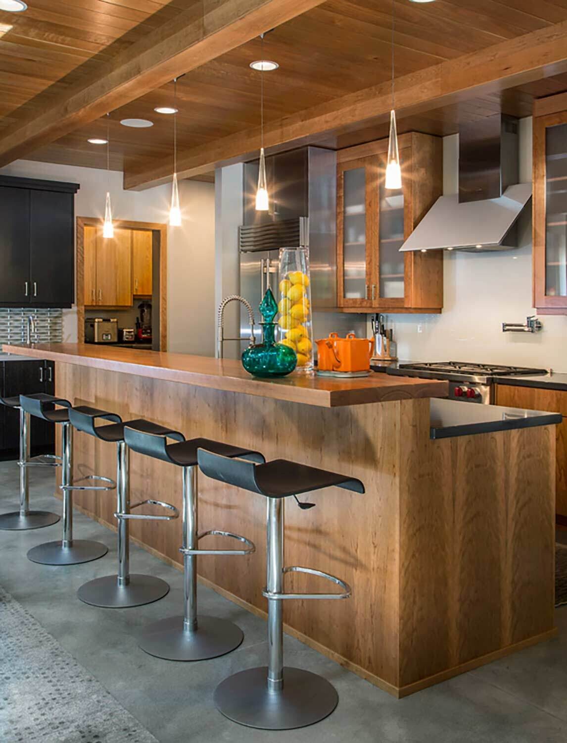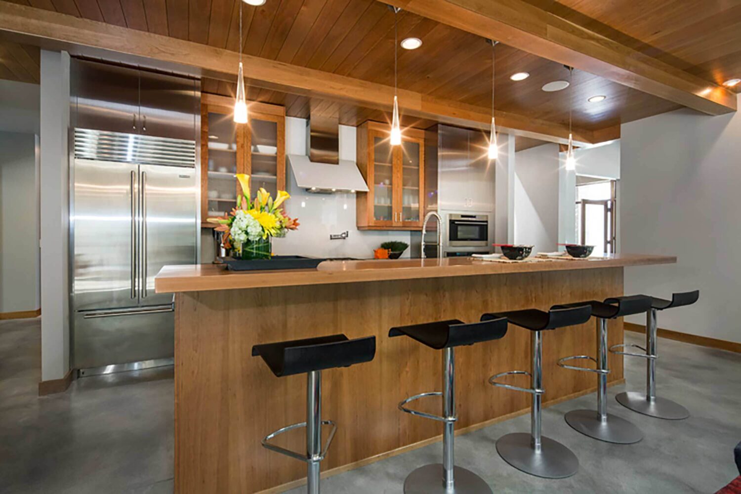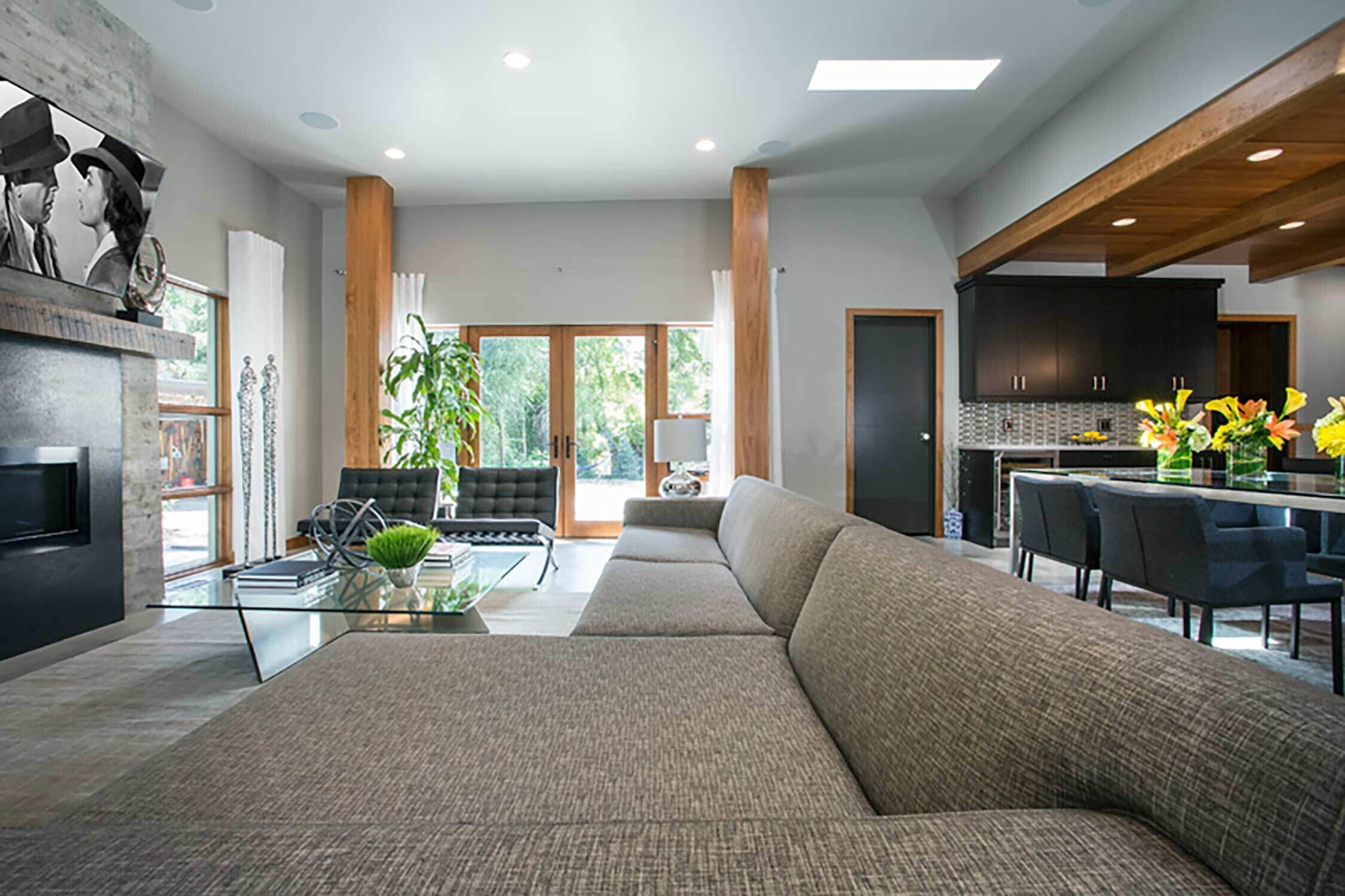 The best modern interior designs strike the right balance of creating an inviting space, while still observing clean lines and minimalist styling characteristic of the look. So when our residential team began work on this Holladay home, we wanted to identify those staples and elevate them. We achieved that by highlighting architectural wood beams, which make several surprising appearances throughout the house, lighting, and other natural elements to reflect the home's majestic surroundings.