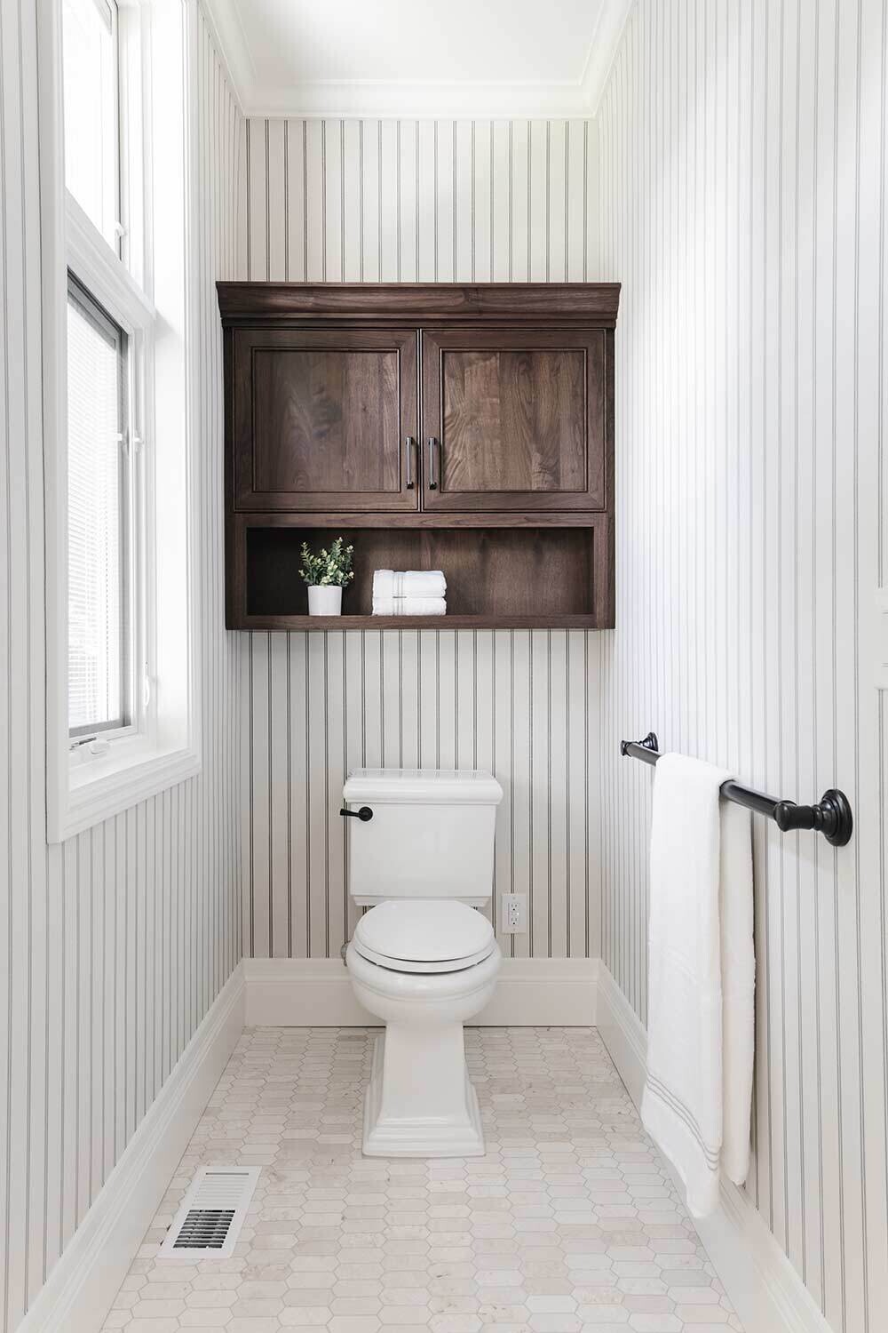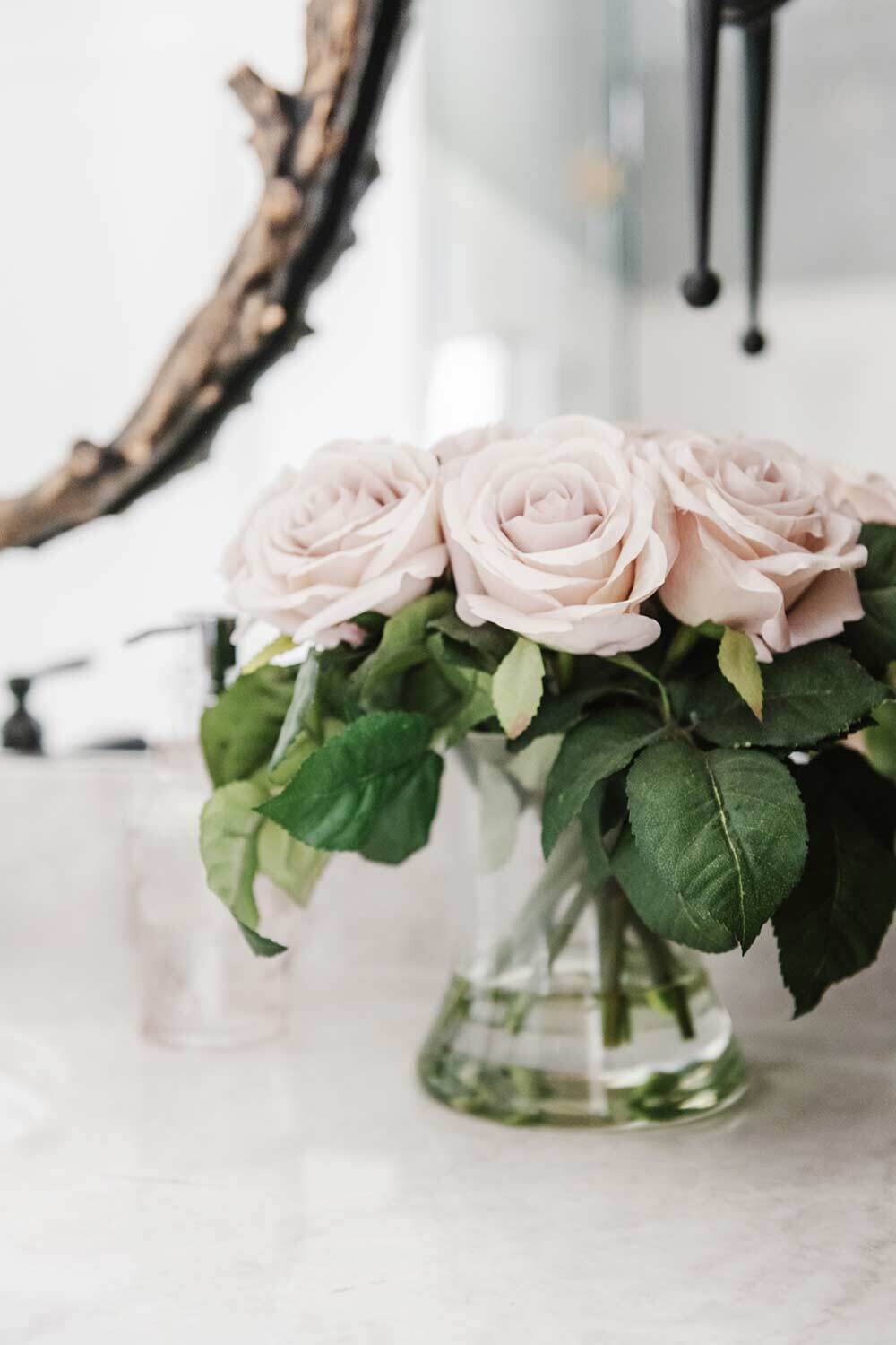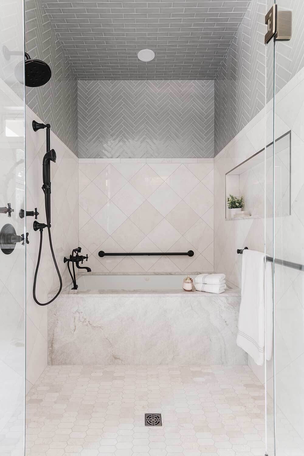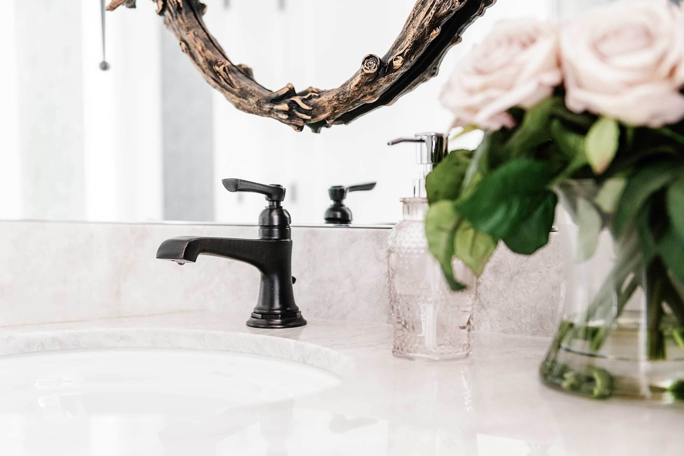 The master bathroom is one of our favorite spots to invest in a few eye-catching details that scream upscale and classic. In this classic bathroom remodel, we were able to achieve that feel with an airy chandelier, a bronze mirror detail and our favorite - his and her washrooms for the ultimate in chic privacy.