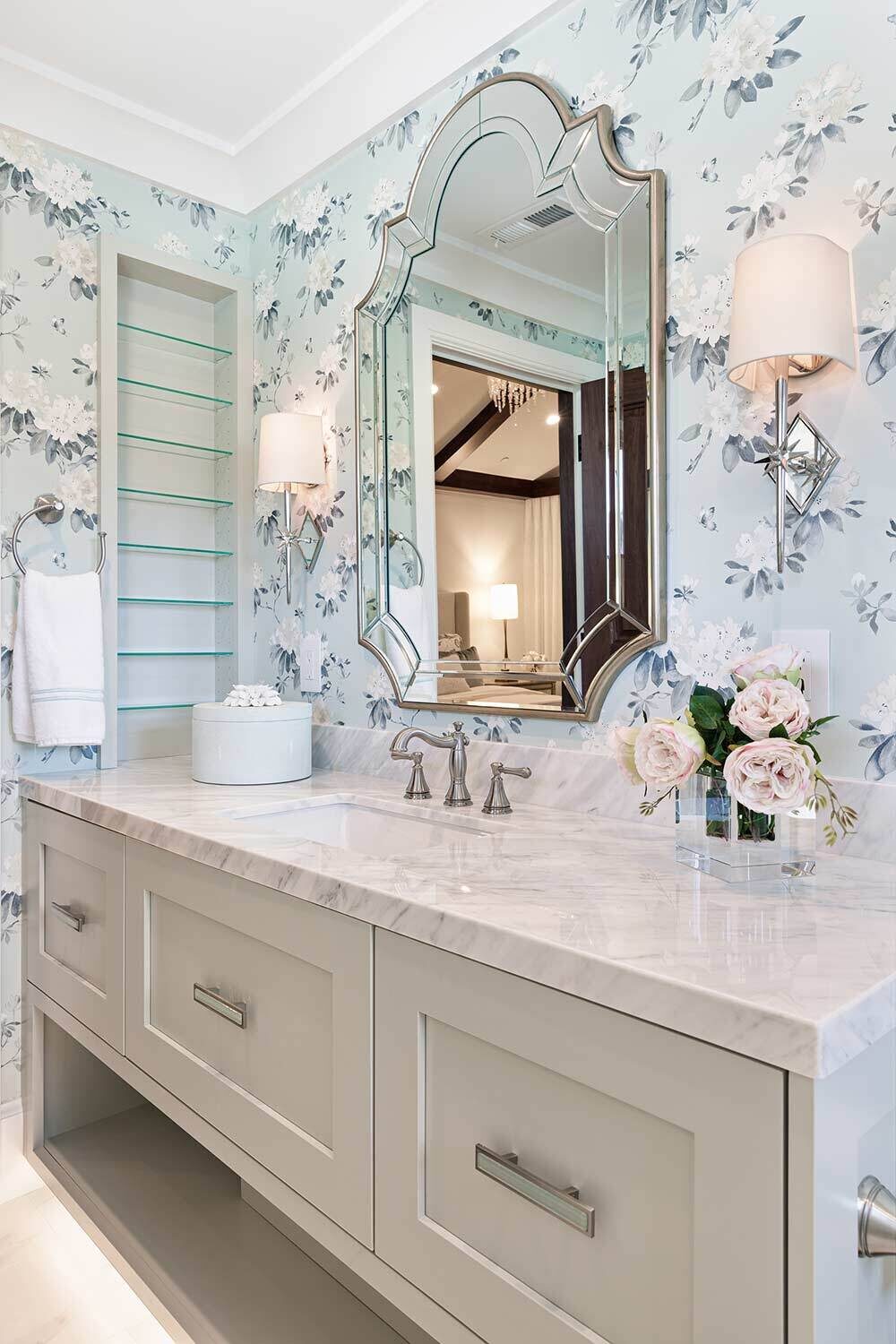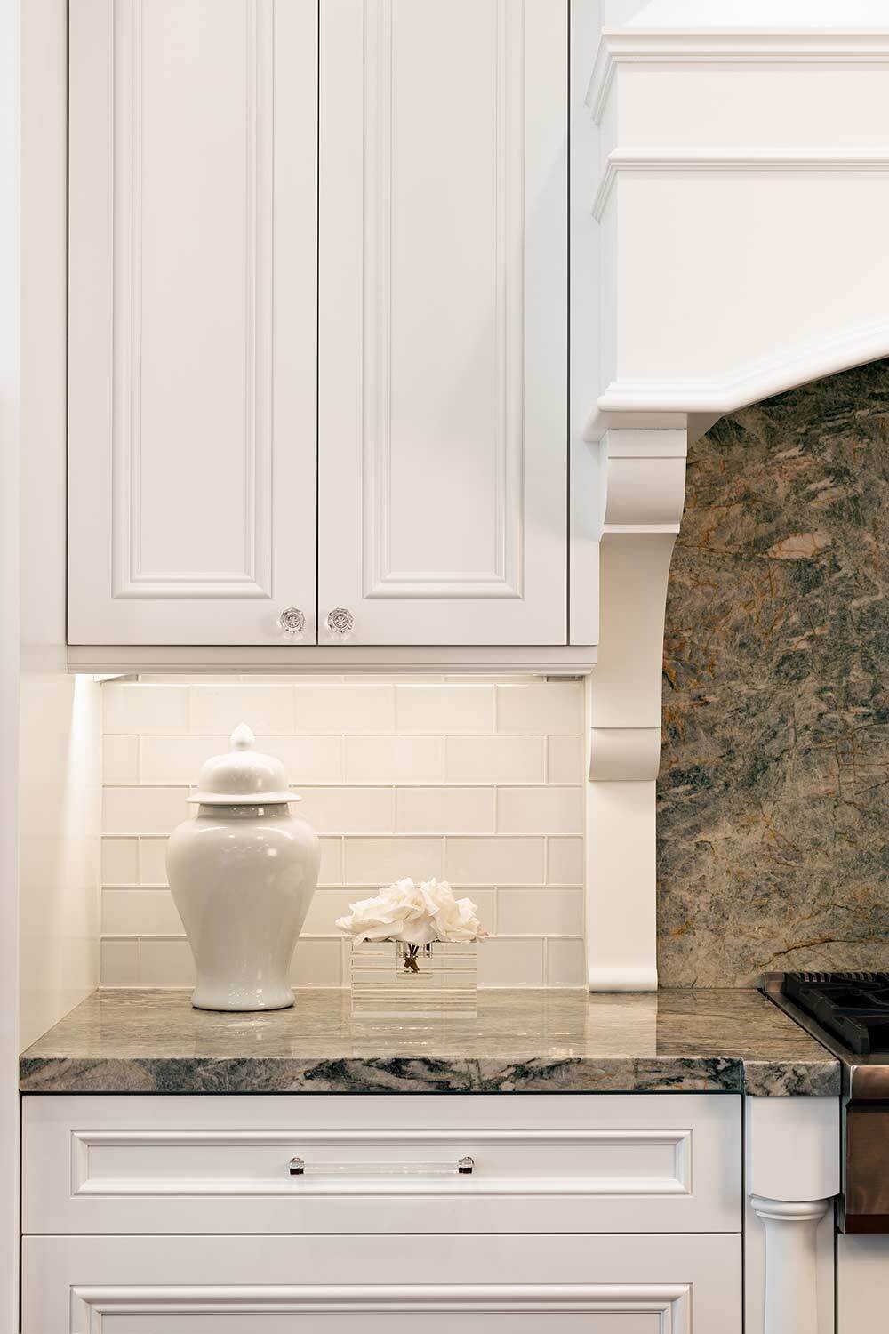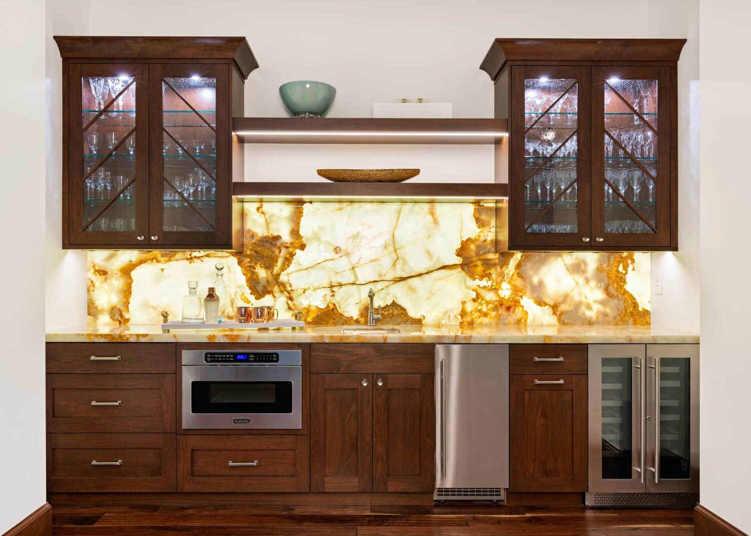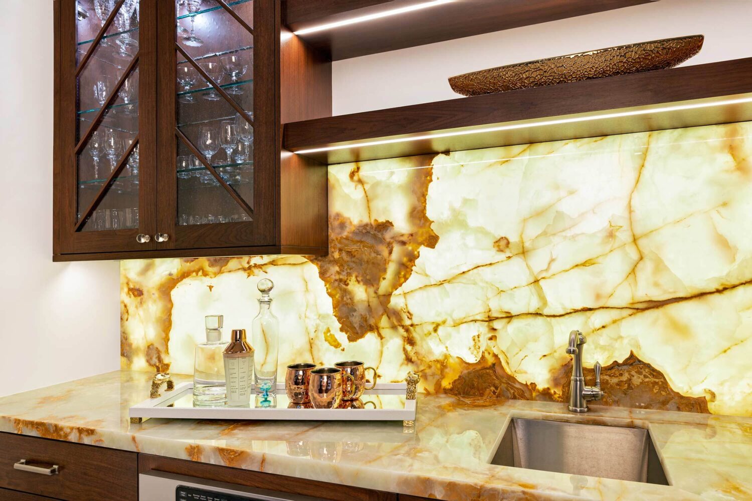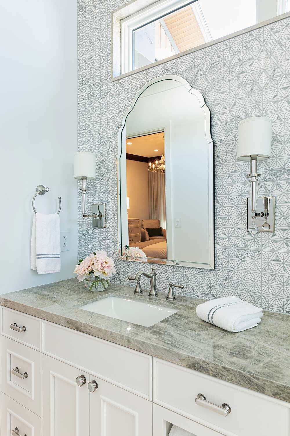 When our residential team tackles a full-house renovation, we take extra care to create a cohesive thread between each space. We can achieve that through complementary patterns, repeating materials (without feeling matchy-matchy) and the usage of a consistent color palette. One of our favorite aspects of this project? Check out the ceiling details in the open kitchen, living room, and theater room!