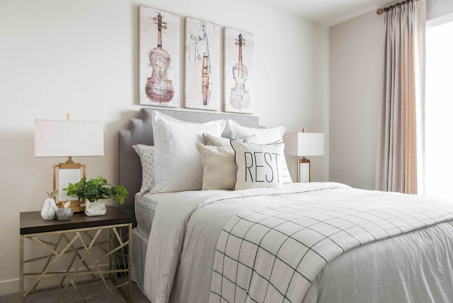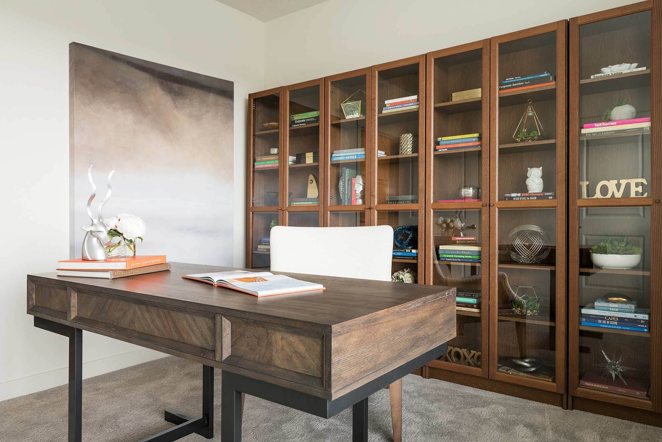 Rivulet Apartments is a resort-inspired community challenging buyers to discover the true meaning of luxury. Boasting tastefully appointed interiors, we wanted to give off a light and airy feeling as soon as prospects enter each unit. Our multi-family design team was able to achieve that with a clean color palate that makes the space shine, modern lines reflected in beautiful office bookcases, and playful art placement. The spaces give off the feeling of being lived in, while also appealing to a broad audience.