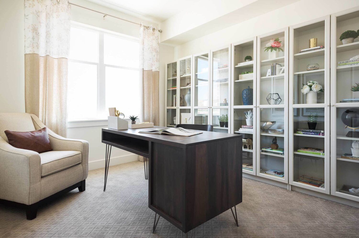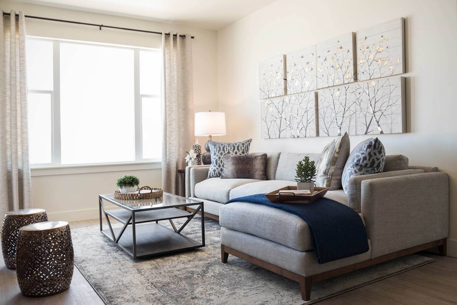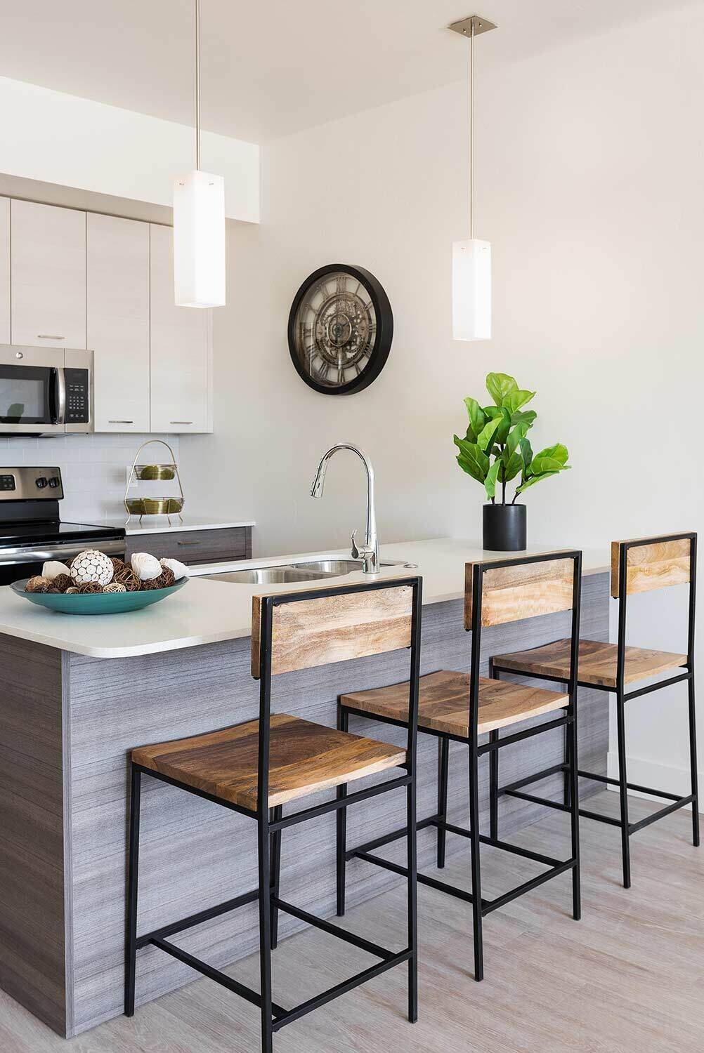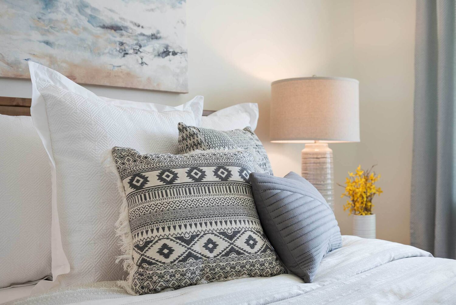 Arboretum at Barber Station is dedicated to ensuring residents truly cherish their living spaces. To encapsulate this essence in our model unit, our interior designers employed a transitional design featuring organic, muted colors, an aesthetic that caters to a variety of tastes. Additionally, we've infused pops of color through plants and themed artwork and fabrics, elevating the spaces and creating an inviting atmosphere for potential buyers to envision their future home.