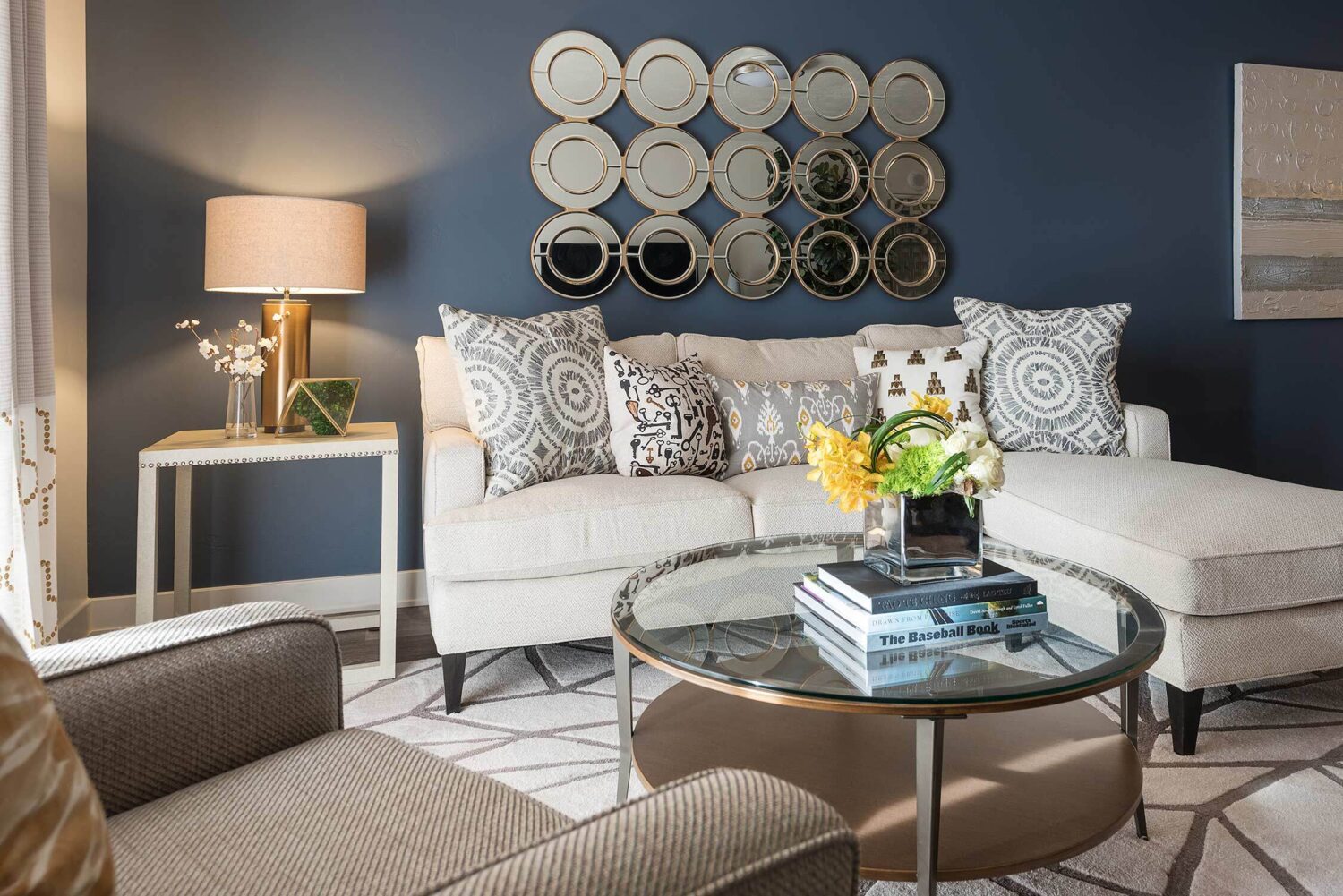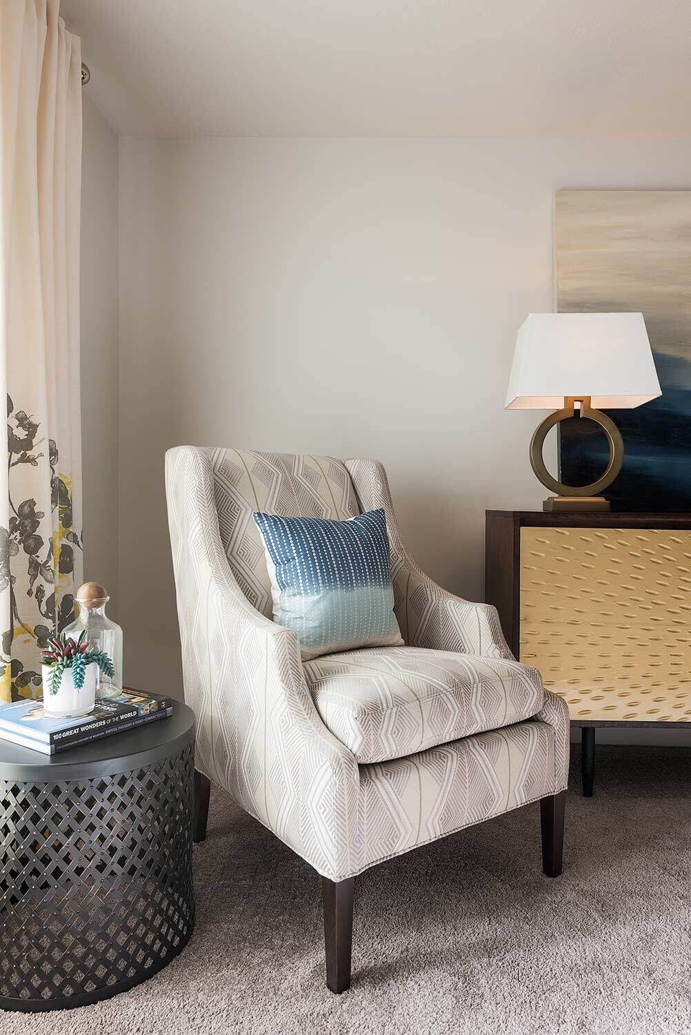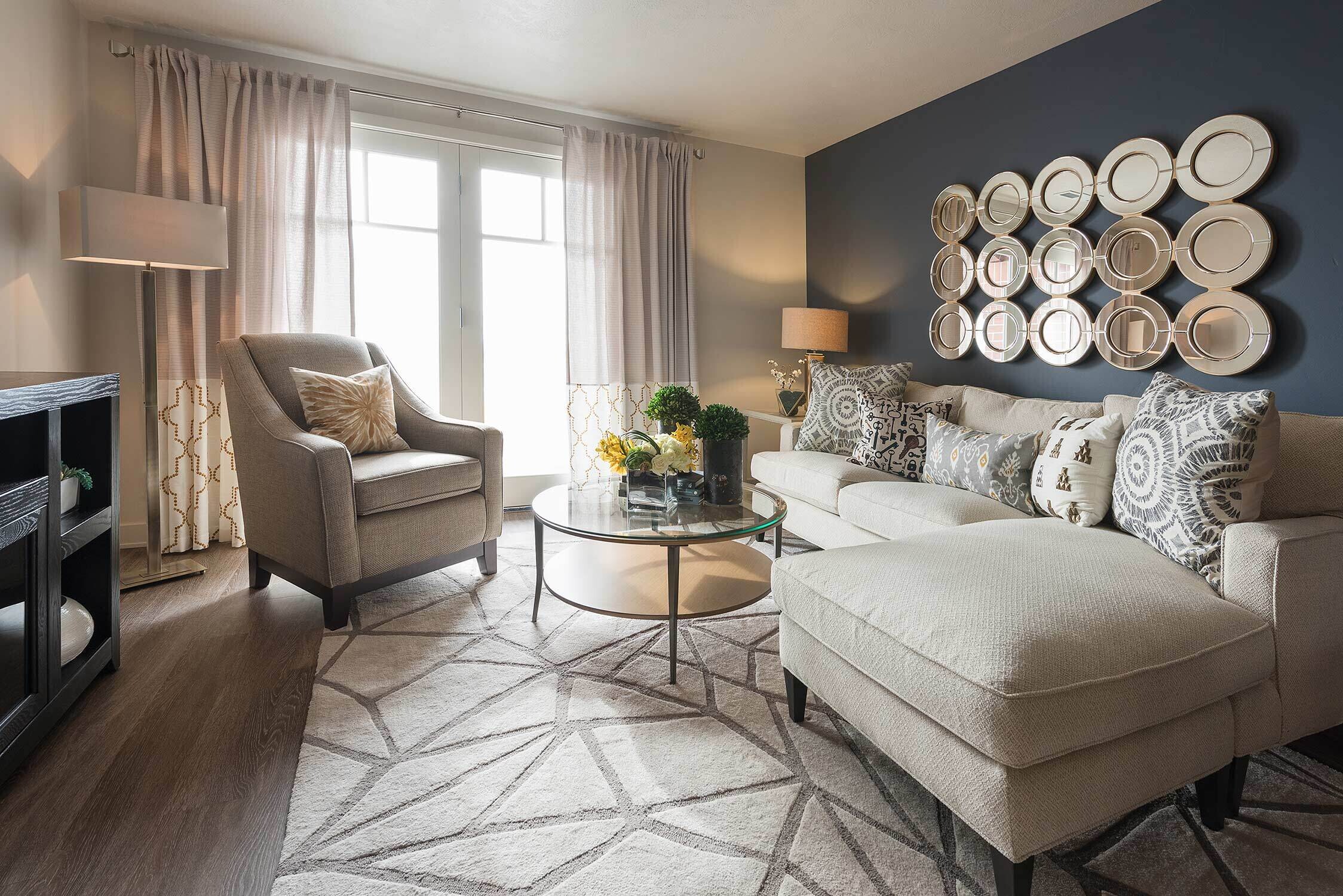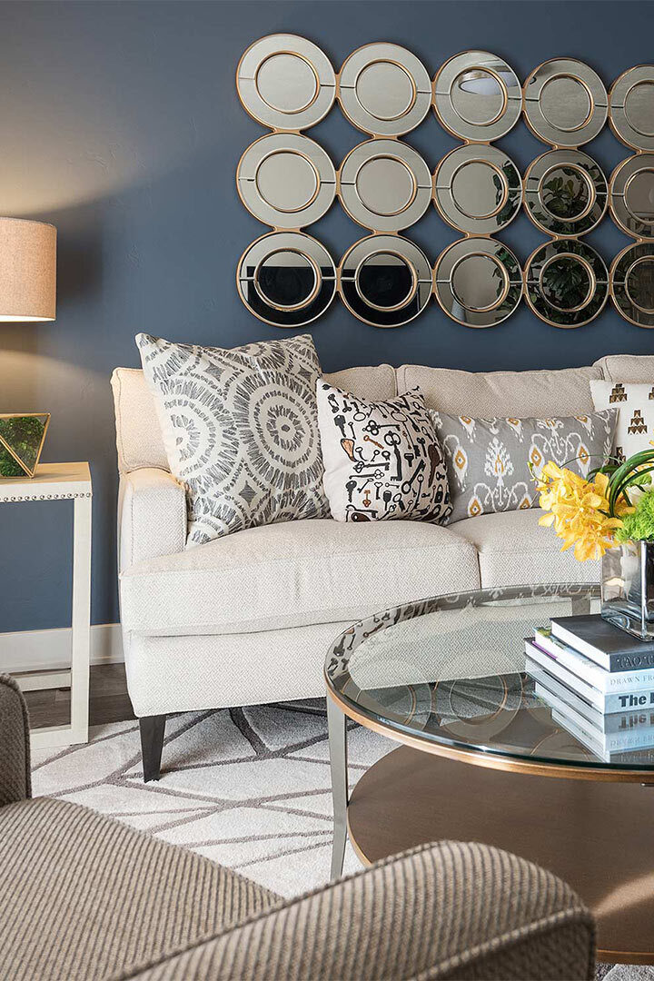 Midtown 360 is a luxury apartment complex that distinguishes itself through high-end amenities and contemporary styling. Our interior designs capitalize on that by taking risks with fun colors and gold accents that catch buyers' attention. Furniture placement is critical in 1-bedroom and studios, and our selections help streamline the space for optimal functionality.