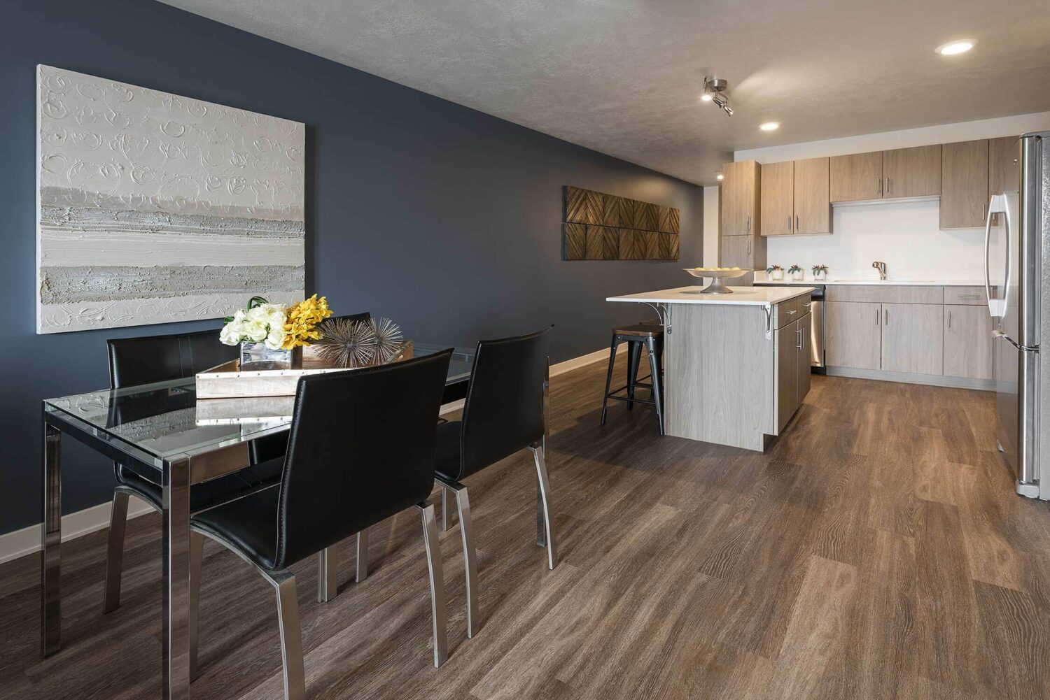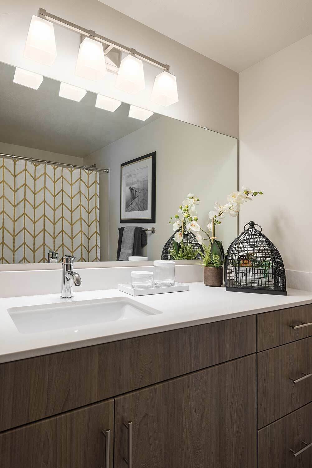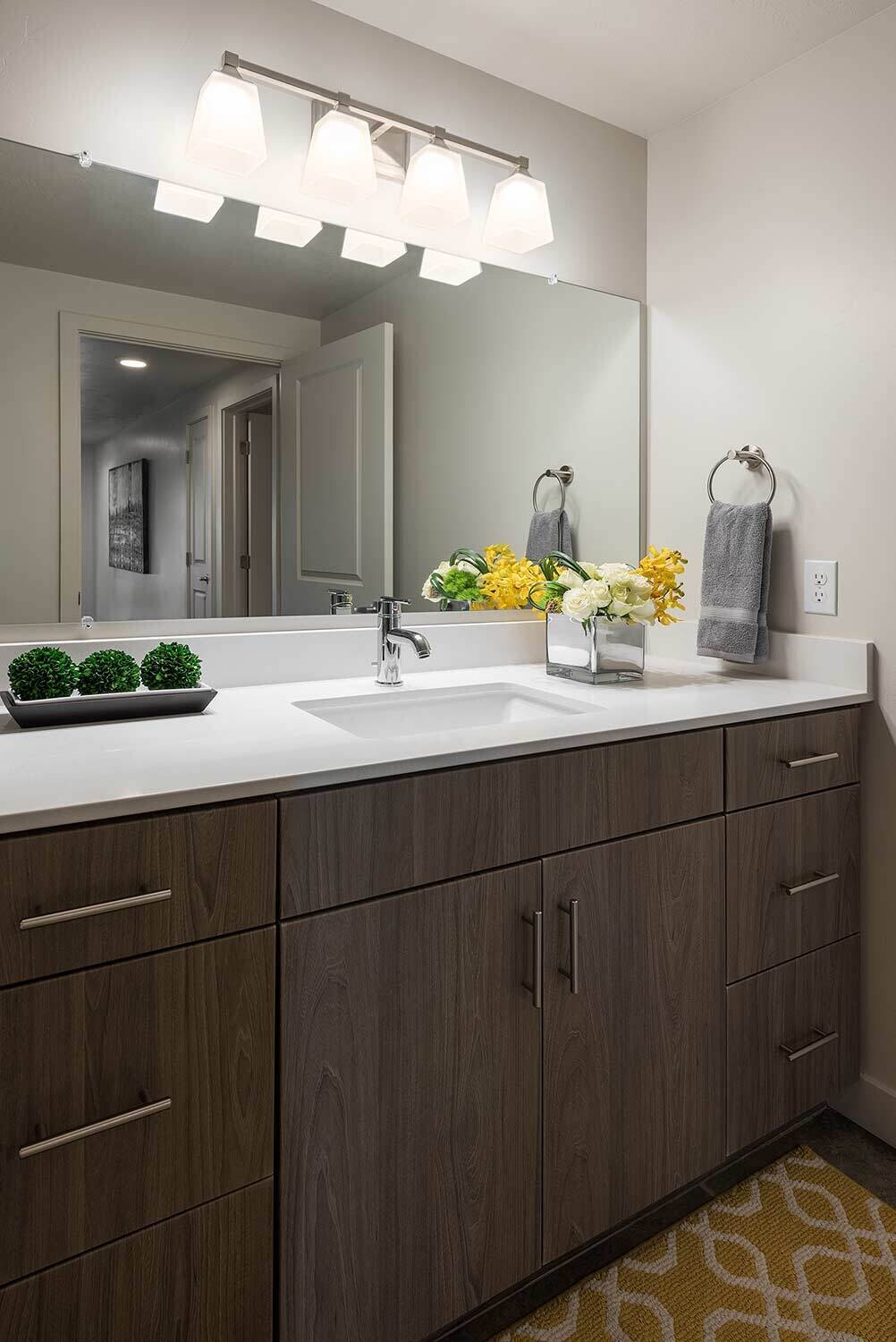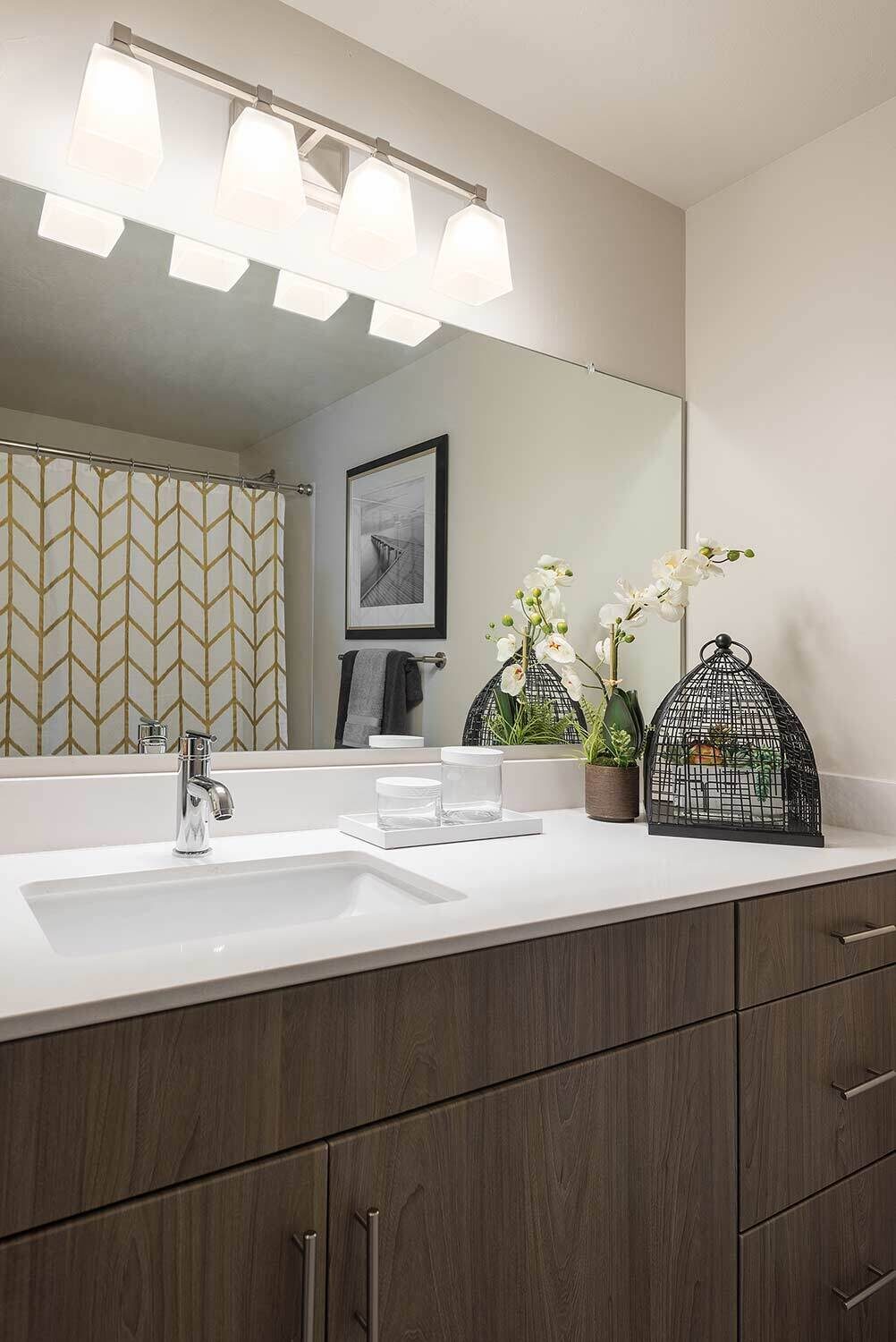 Midtown 360 is a luxury apartment complex that distinguishes itself through high-end amenities and contemporary styling. Our interior designs capitalize on that by taking risks with fun colors and gold accents that catch buyers' attention. Furniture placement is critical in 1-bedroom and studios, and our selections help streamline the space for optimal functionality.